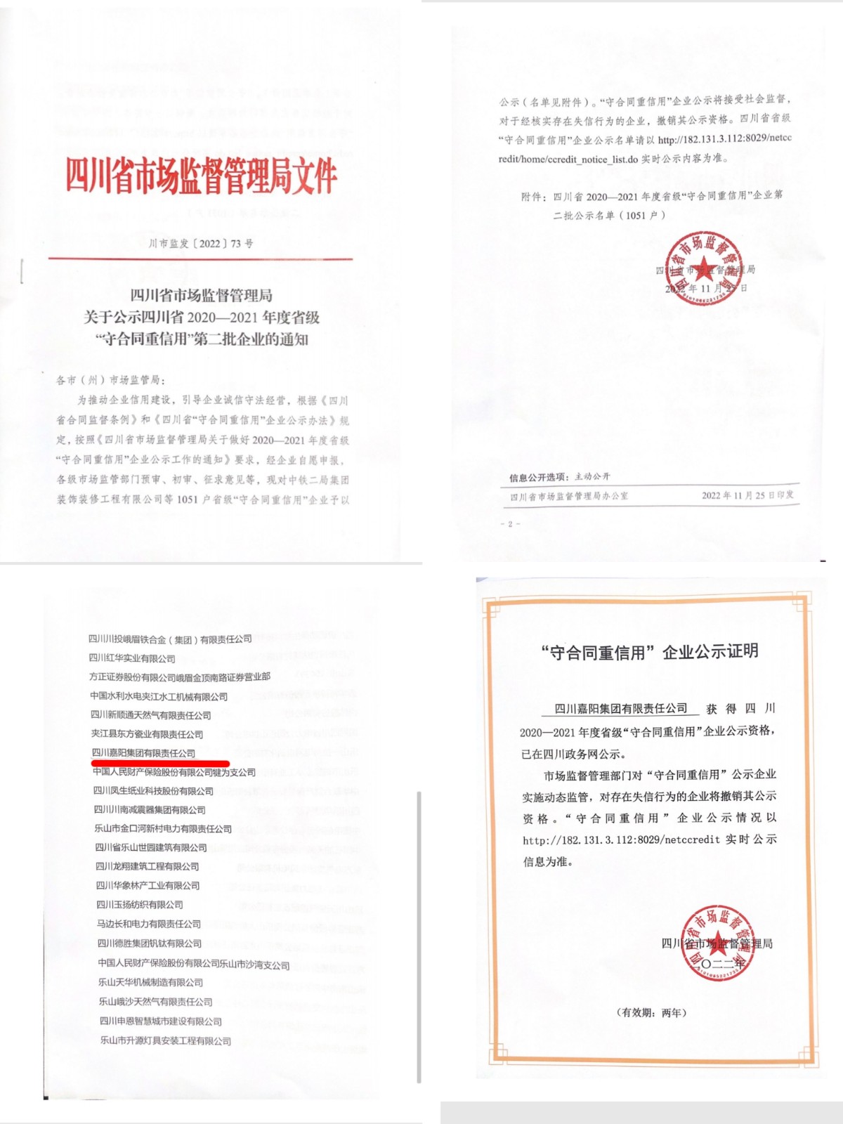 近日,四川2020—2021年度省级“守合同重信用”企业评选结果揭晓,嘉阳集团榜上有名,再度蝉联这一称号。