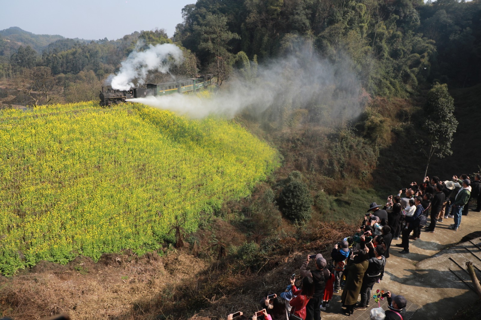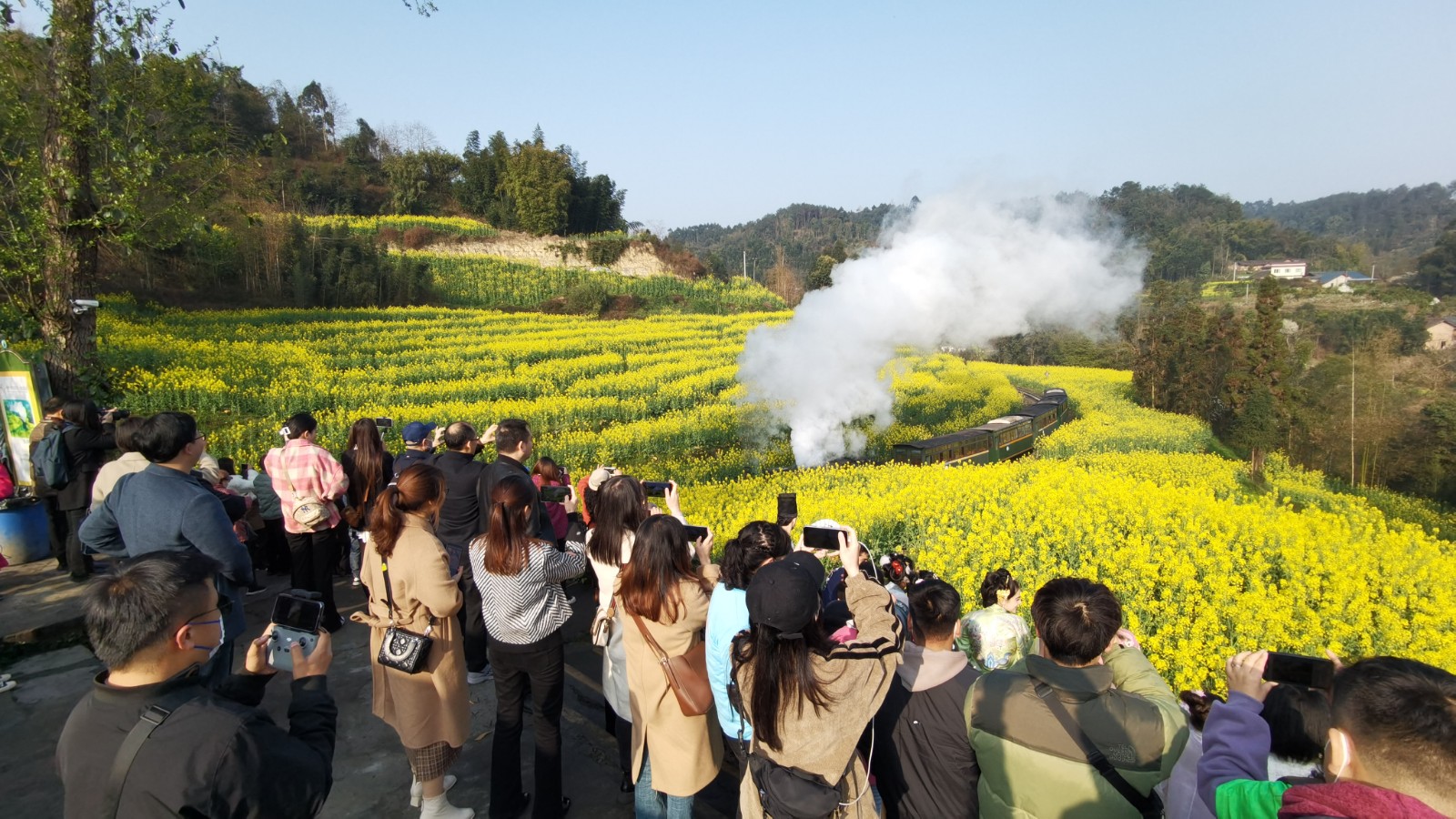 油菜花开,美丽如画,开往春天的小火车正在画卷中穿行,铁路旁、山头上游人们徜徉在春天里。嘉阳集团川投峨旅公司2023年“花季之旅”开启以来,逐步进入高潮,游客数量持续增加,周末更是一票难求,近万人的游客一扫疫情以来的阴霾,迎来旅游业复苏的春天。