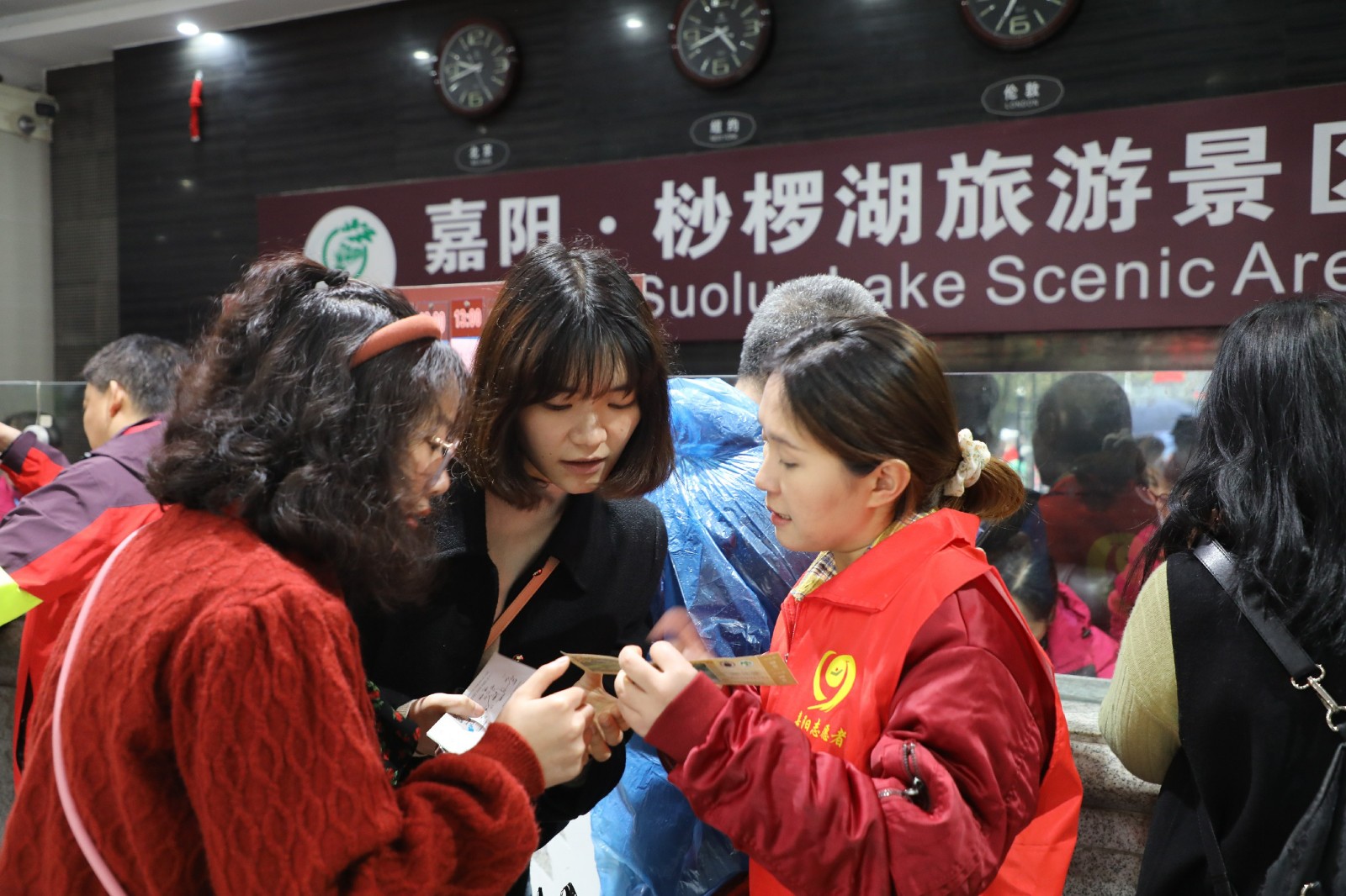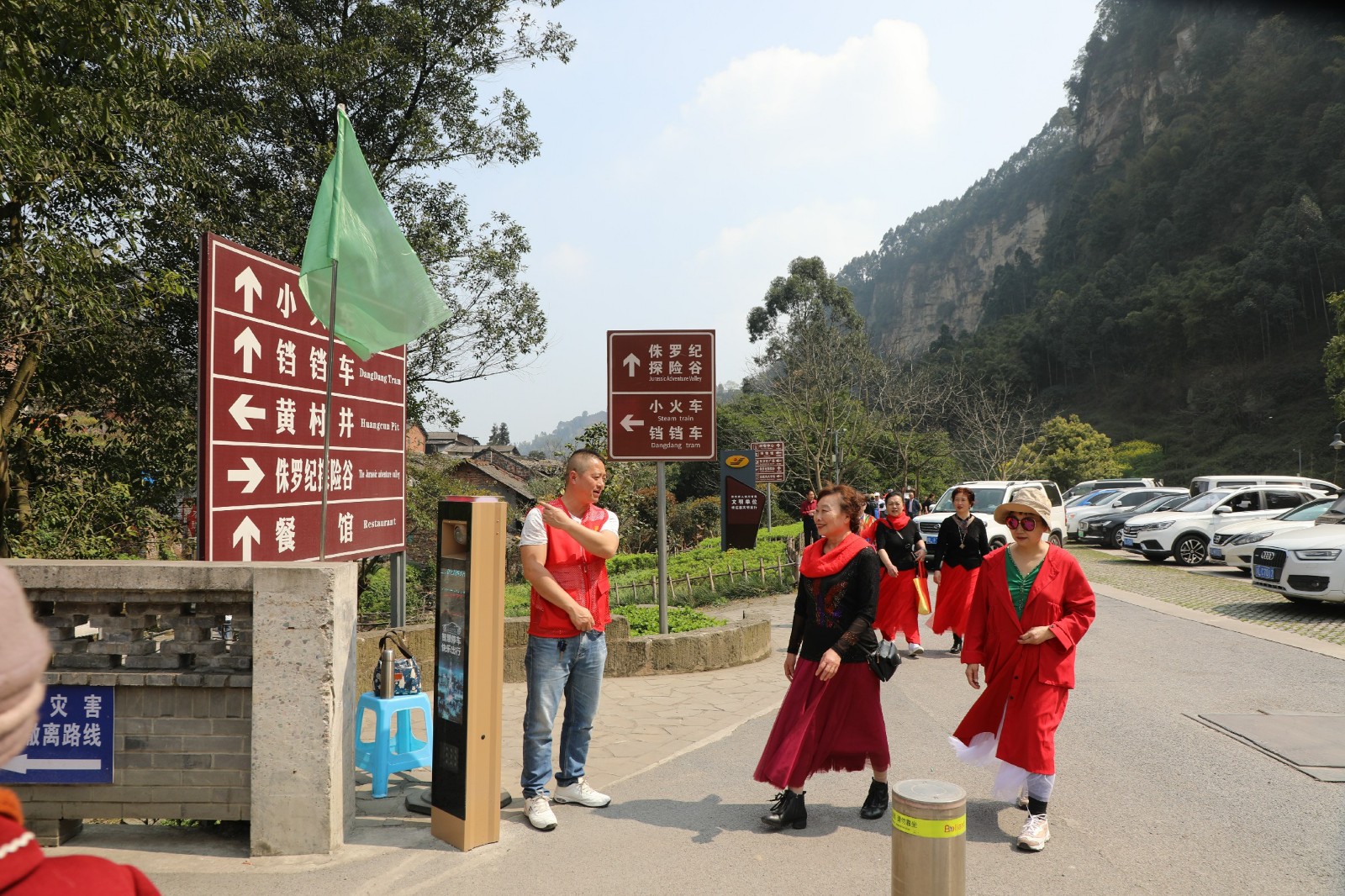 游客们的到来带来了矿山的繁华与热闹,同时也带来了安全、咨询、引导等各方面的压力,尽管川投峨旅公司对此早有准备,但也挡不住游客们赏花观光的热情,道路指挥、观光引导、咨询服务……到处都需要人手。嘉阳集团志愿者们迅速奔赴各岗位,参与到旅游服务中,这项活动从3月10日启动到4月9日结束,每周末将派遣28名志愿者总计将有140名志愿者参与到旅游服务的各个环节。