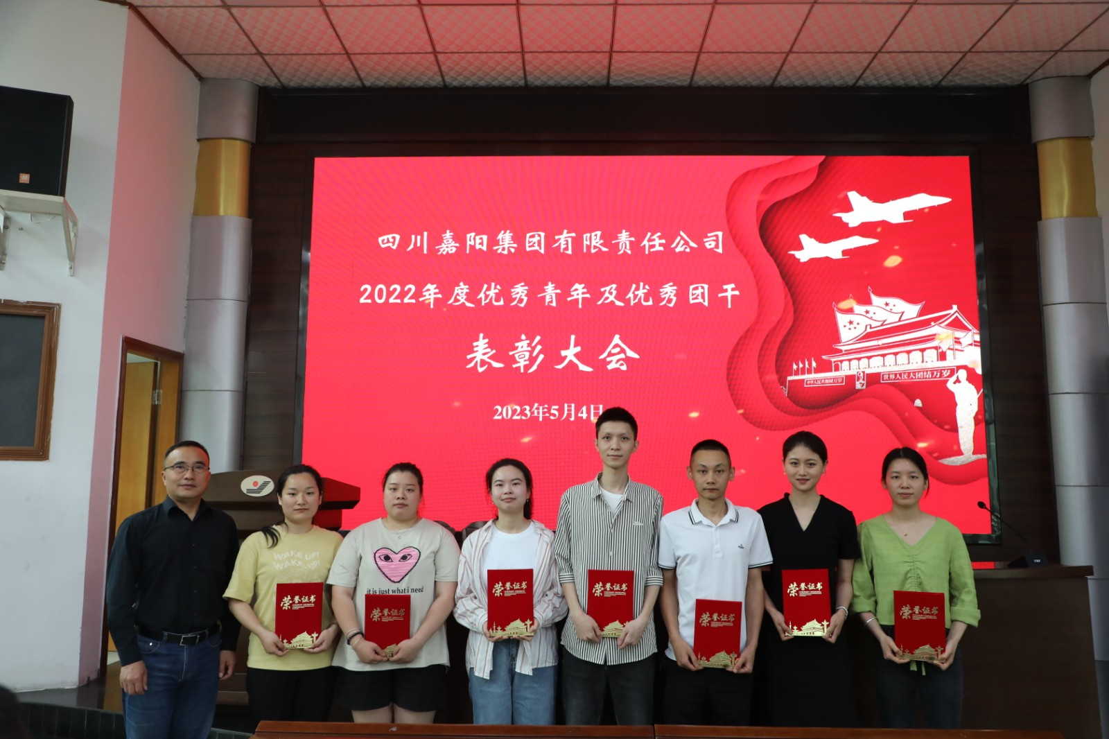 委员会关于表彰2022年度优秀青年及优秀团干的决定》,表彰了邓港等15名“优秀青年”,李有平等2名“优秀共青团干部”。党委书记、董事长杜勤向青年们致以节日的问候,向受表彰人员颁发了荣誉证书,并勉励青年们要不负青春,为建设“百年嘉阳”努力奋斗。