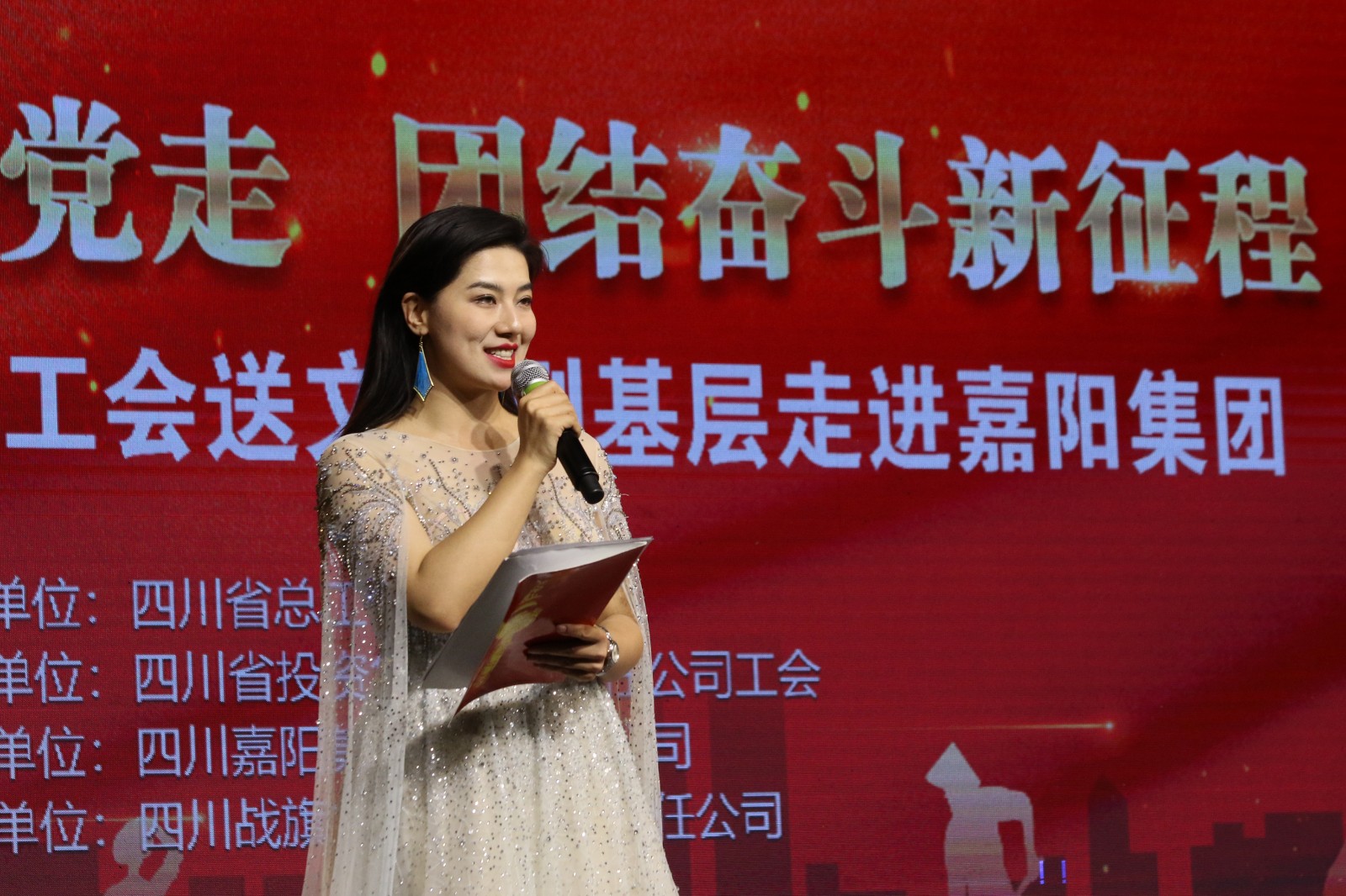 5月16日,四川省总工会送文化到基层“中国梦·劳动美——凝心铸魂跟党走,团结奋斗新征程”主题文艺晚会在嘉阳集团矿区精彩上演,演出单位四川战旗文化传播有限责任公司阵容强大,公司近千名职工家属共享文化盛宴。