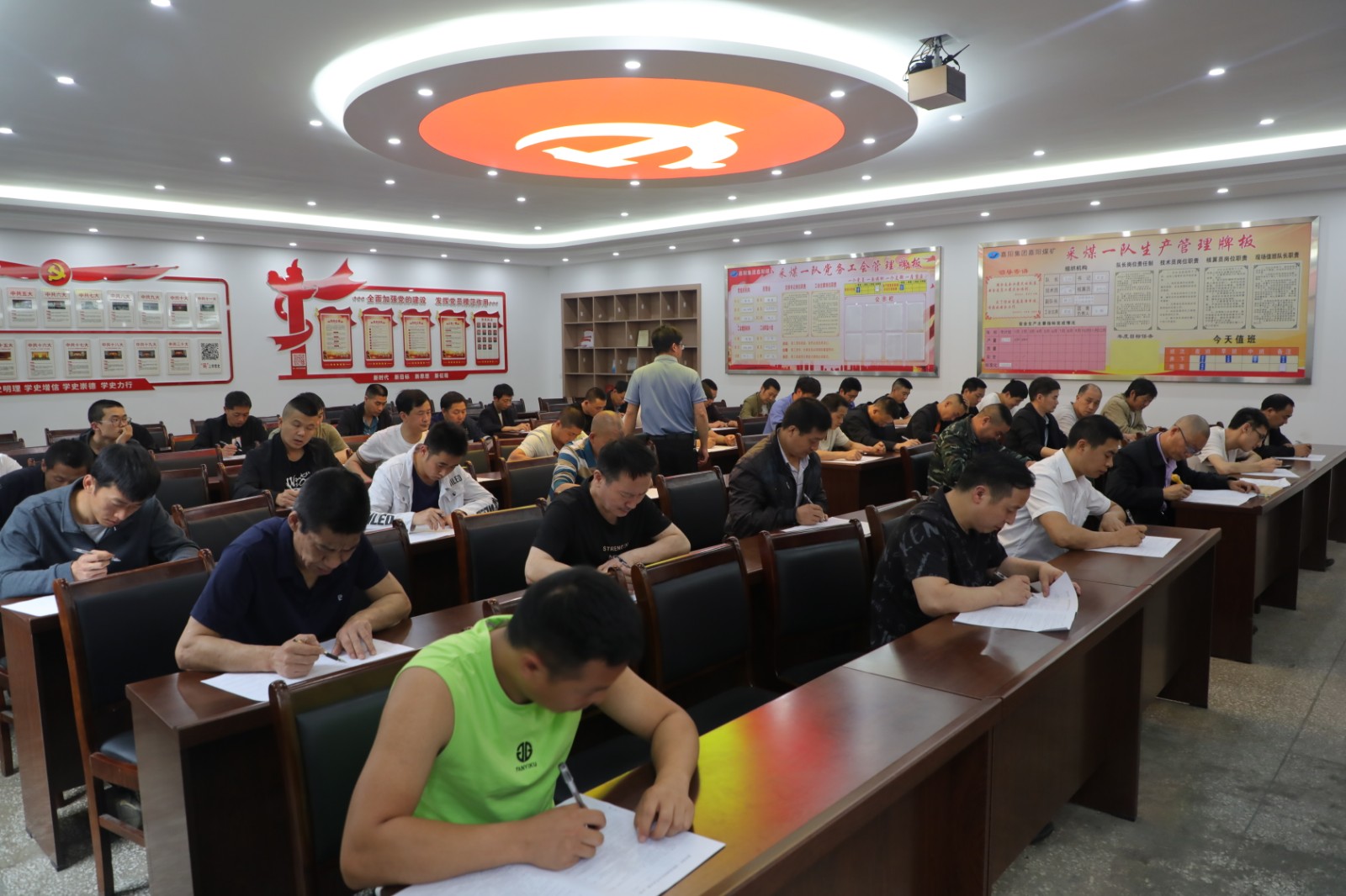 “注意审题,认真思考……”5月18日上午,嘉阳煤矿采煤一队会议室正在进行职工“一规程四细则”闭卷考试,监考老师提醒职工认真作答。这是嘉阳煤矿开展全员规程细则摸底考试的一个场景。
