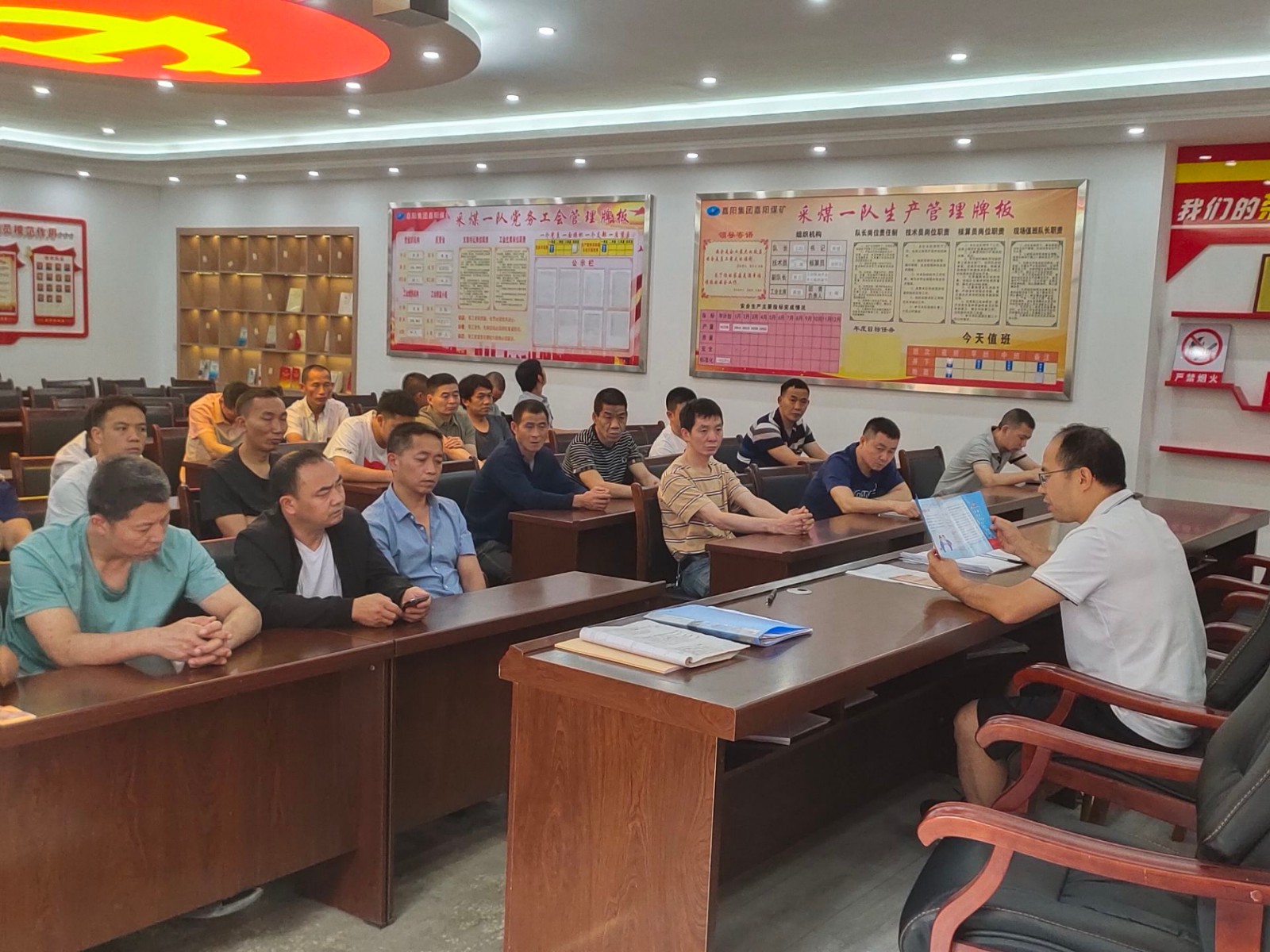 为深入开展安全生产月活动,弘扬安全文化,增强职工安全责任意识,营造"人人讲安全、个个会应急”的浓厚氛围,嘉阳煤矿专门成立了领导小组,详细制定了全面、细致的工作方案。煤矿利用每周生产例会和安全专题会,各队(厂)也多次利用安全学习会宣贯习近平总书记关于安全生产特别是安全红线的重要论述,深入开展应急科普“五个一”宣传活动。先后多次组织发放安全应急科普读本、手册到一线职工手中,并有效利用进班会、学习会集中学习。在煤矿办公区域张贴悬挂“安全生产月”“迎大运保安全”主题贴画和标语条幅,并在井口电子屏滚动播放,大力宣传安全生产方针政策、法律法规、消防及职业卫生等常识,使广大职工充分认识到了安全生产的重要意义。