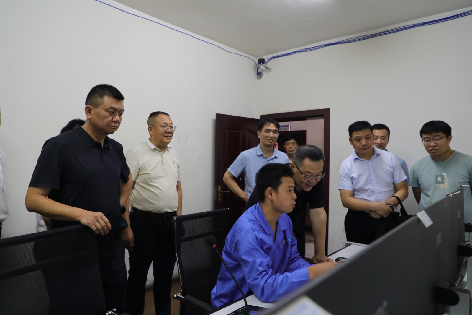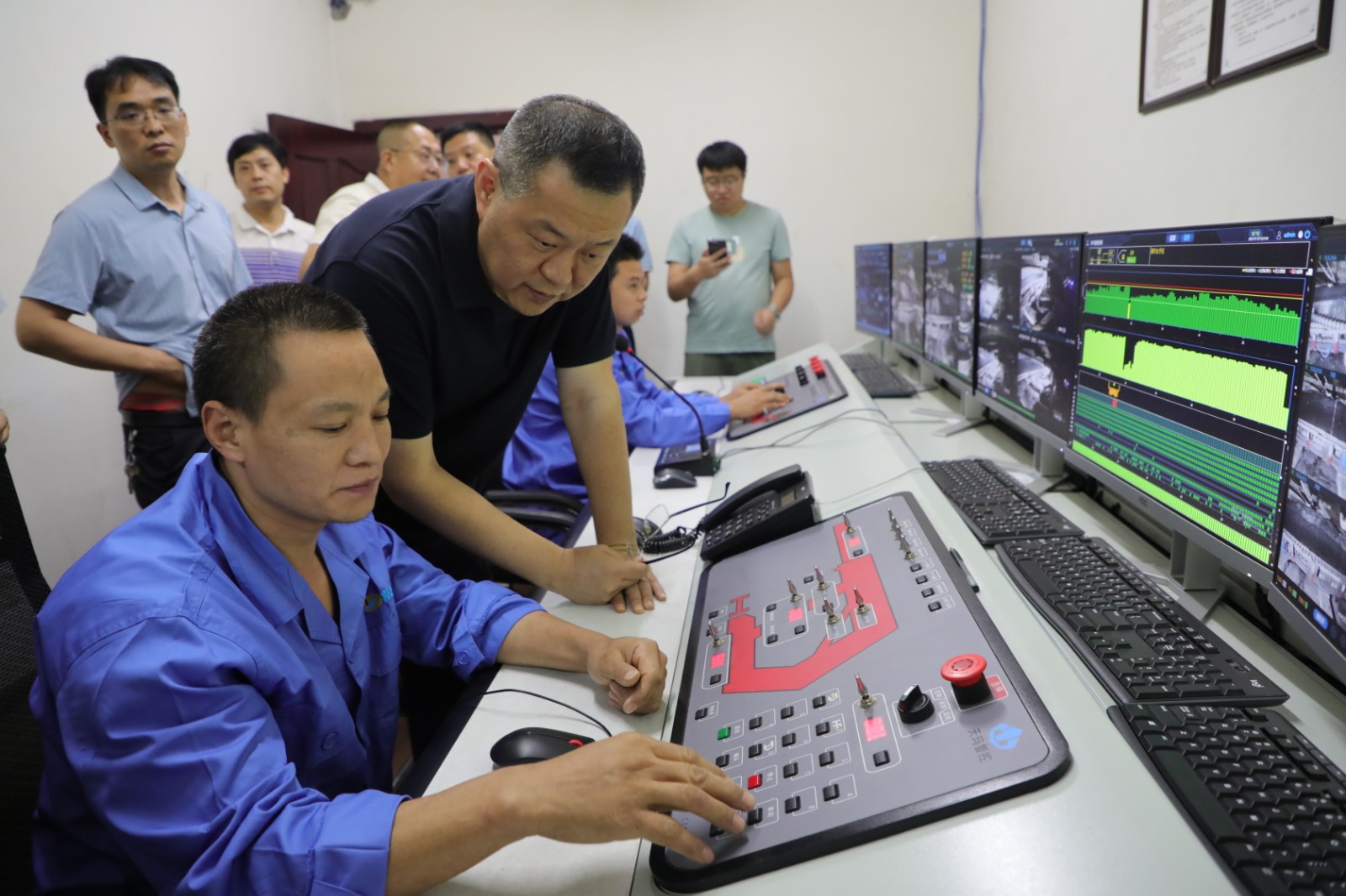 王峰副厅长一行还前往嘉阳煤矿采煤二队,实地参观了嘉阳煤矿智能化综采无人工作面地面远程操控平台,兴致勃勃地观看了平台现场演示,对嘉阳高科技新技术的运用连连称赞。