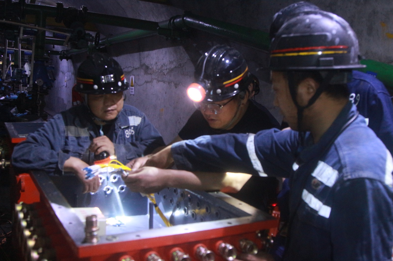 8月29日,在嘉阳煤矿天锡井+215水平中央水泵房,调度中心遥测室电工开始熔接井下第一台5G通讯设备中的光纤,这标志着5G通讯入井示范项目建设全面铺开,项目建成后将与地面组网对接。