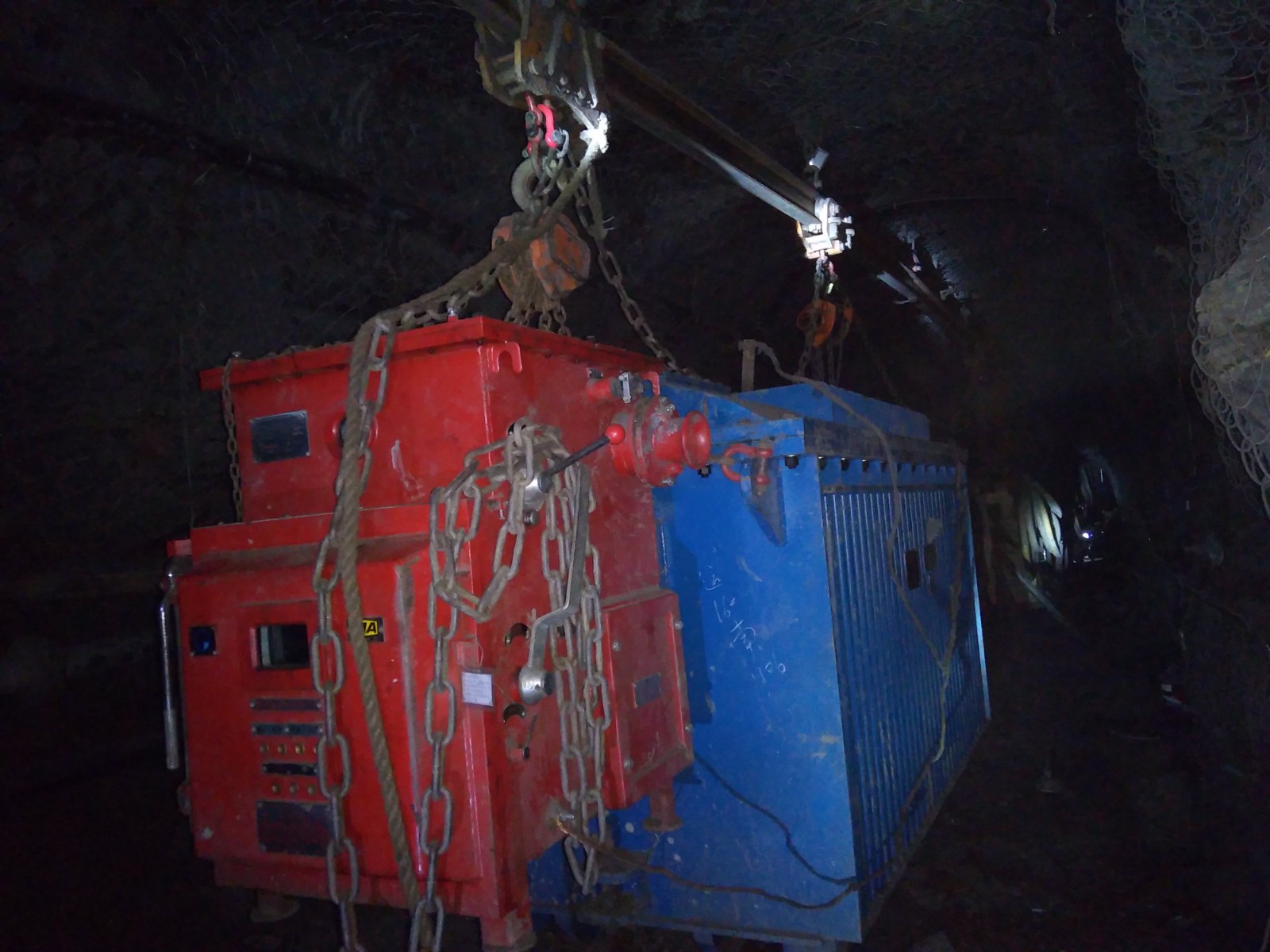 采煤一队1106智能化综采工作面巷道无地轨,改为柴油单轨吊车运输方式后却带来了配电点频繁移动的难题。为此,“党员科技攻关小组”成员集中攻克难关,大家在现场办公中发现,单轨网络中另一种气动单轨吊车的承重小车可固定于单轨沿线任何地方,也方便悬挂手动葫芦起吊重物,于是提出将断电后的配电点设备逐一捆绑连成一体并悬空,由柴油单轨吊车缓慢牵引的方式进行整体移动。为了确保安全顺利,攻关小组做了两次探索性移动,在捆绑、起吊、运输、指挥等流程上细化了措施。