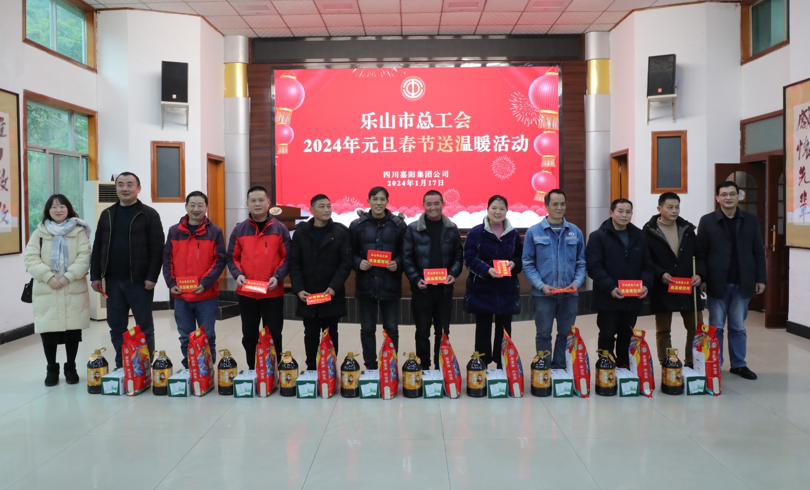 1月17日,乐山市总工会经审会主任郑祝彬一行到公司开展元旦春节送温暖慰问活动,向嘉阳煤矿等二级单位的10名困难职工代表送上慰问金、慰问品,将组织的温暖和新春祝福送到困难职工的心坎上。
