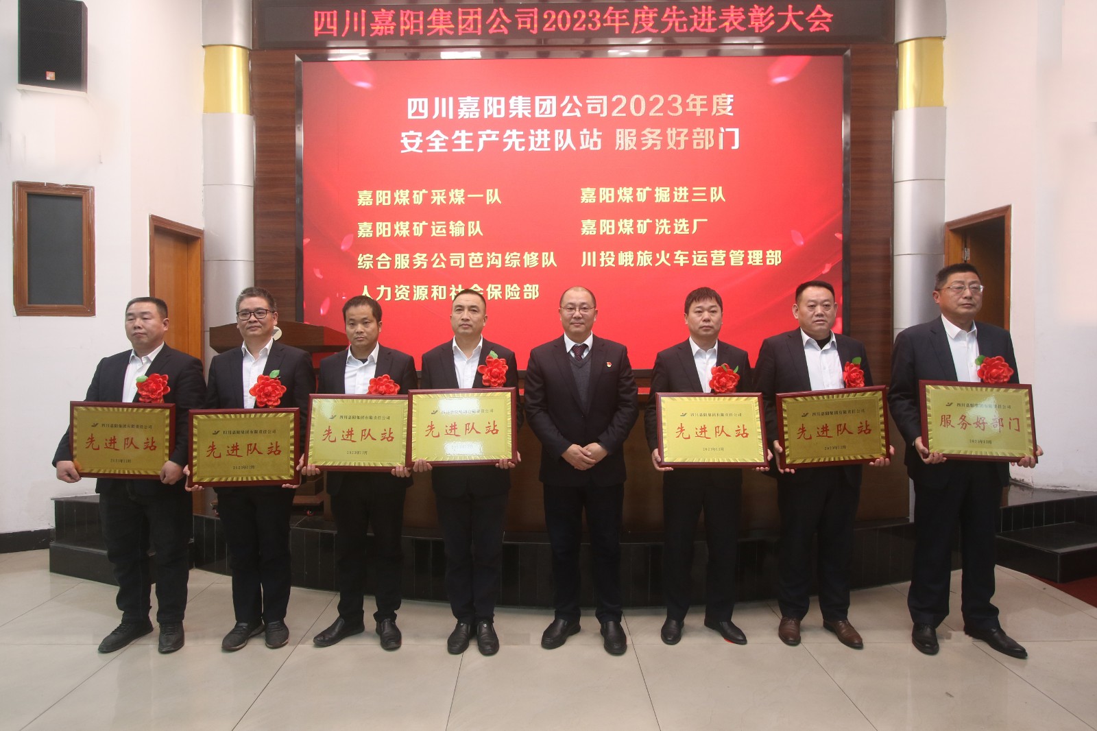 2024年1月31日下午,音乐激昂,掌声雷动,嘉阳集团2023年度先进表彰大会在办公楼底楼会议室隆重召开,先进代表和荣誉矿工神采奕奕喜获表彰。