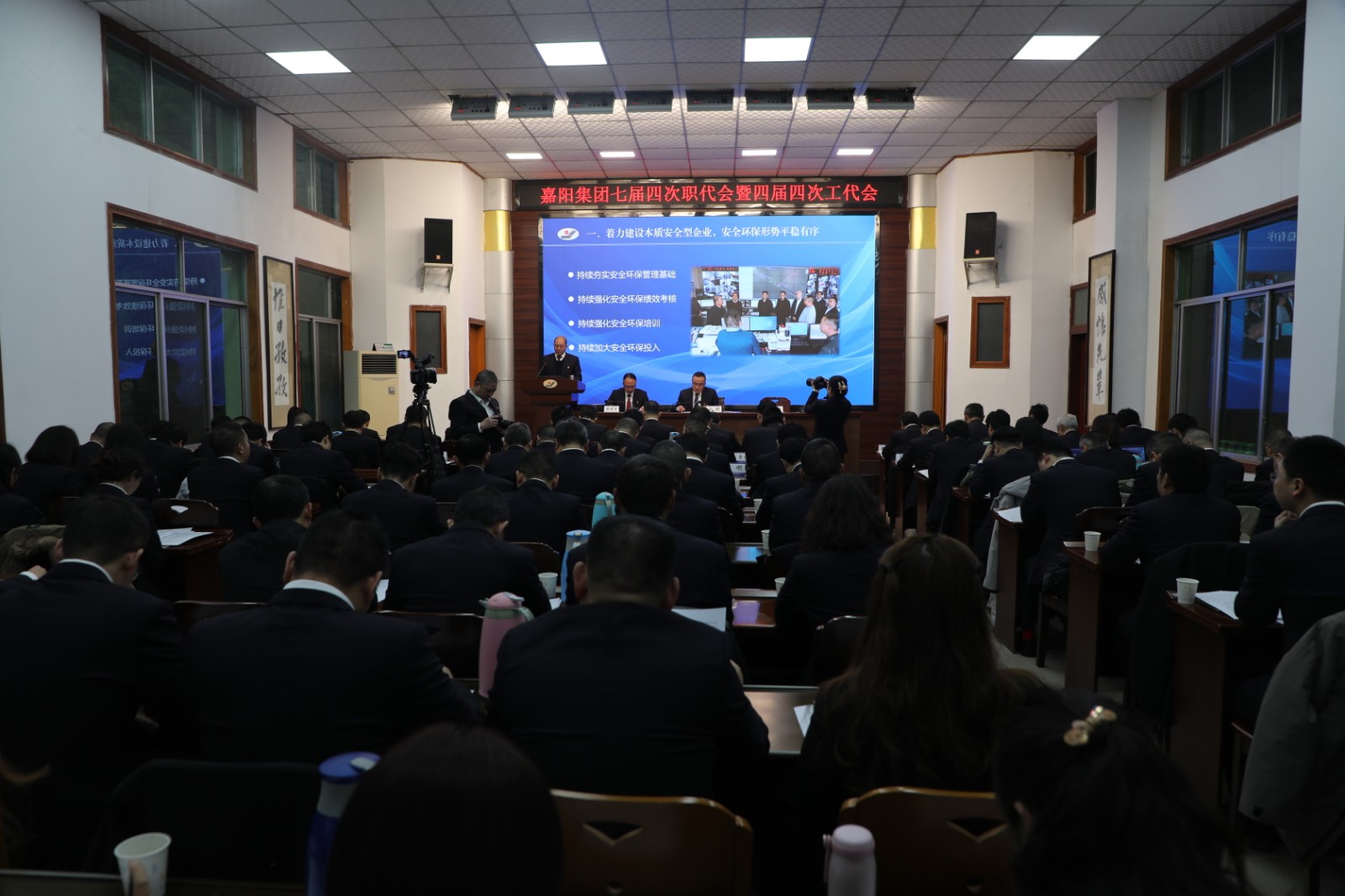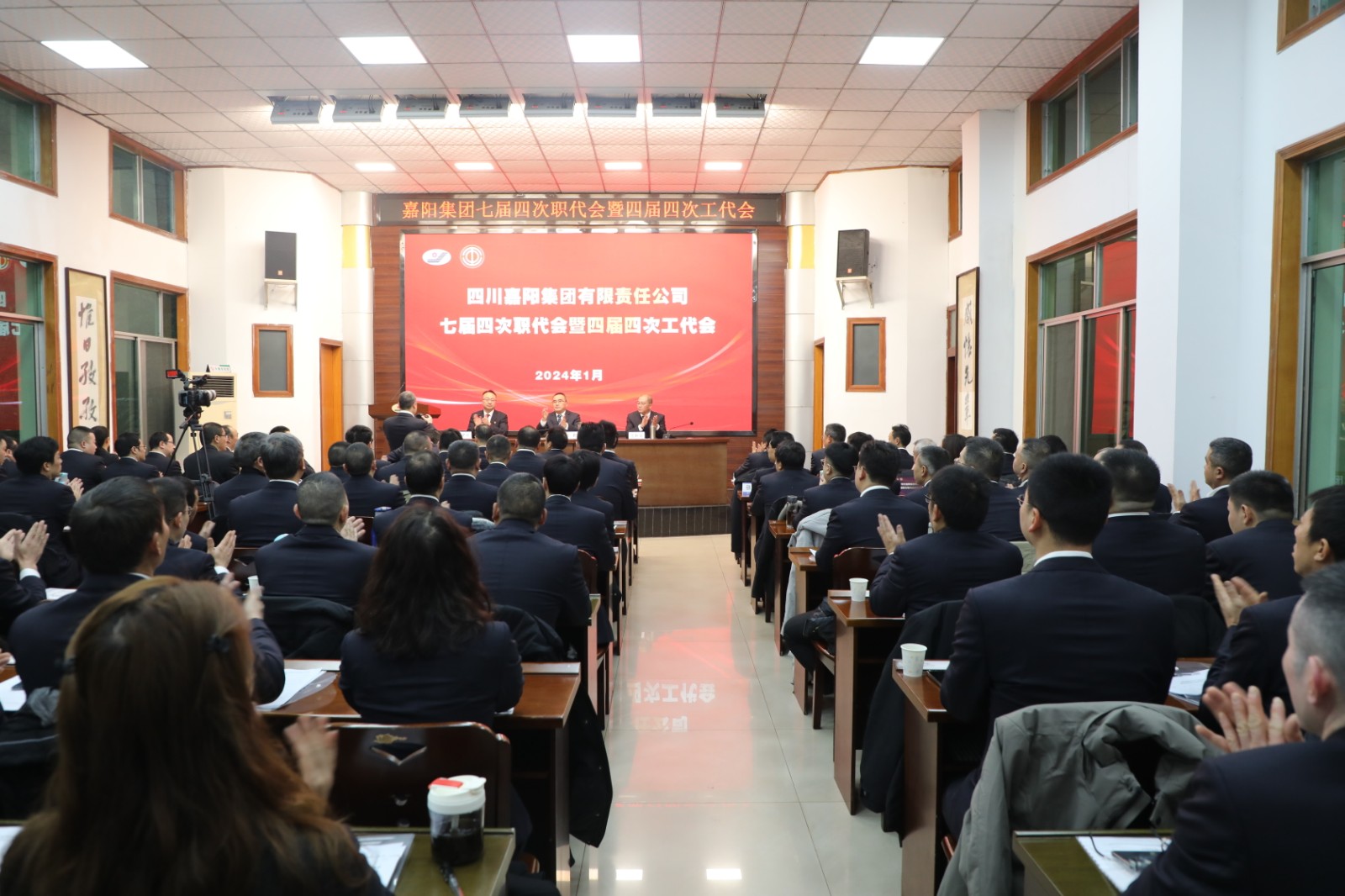 2024年1月30日—31日,集团公司七届四次职工代表大会暨四届四次工会会员代表大会胜利召开。大会听取、审议、通过了2023年行政工作报告、2023年工会工作报告以及相关计划、方案。签订了《嘉阳集团公司集体合同》,形成了大会决议,党委书记、董事长杜勤作了讲话。114名代表齐聚一堂共商大计,凝心聚力再绘蓝图。