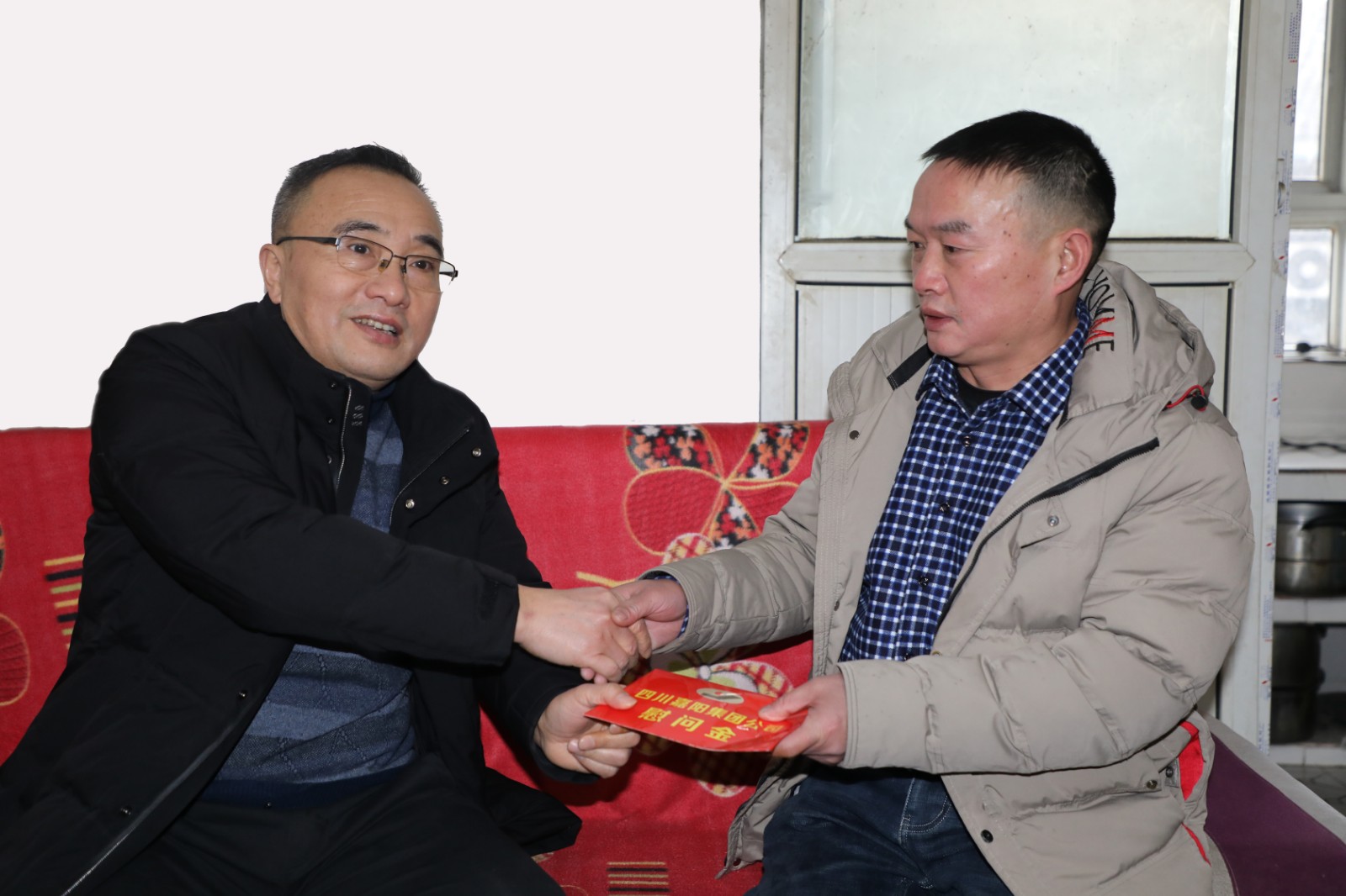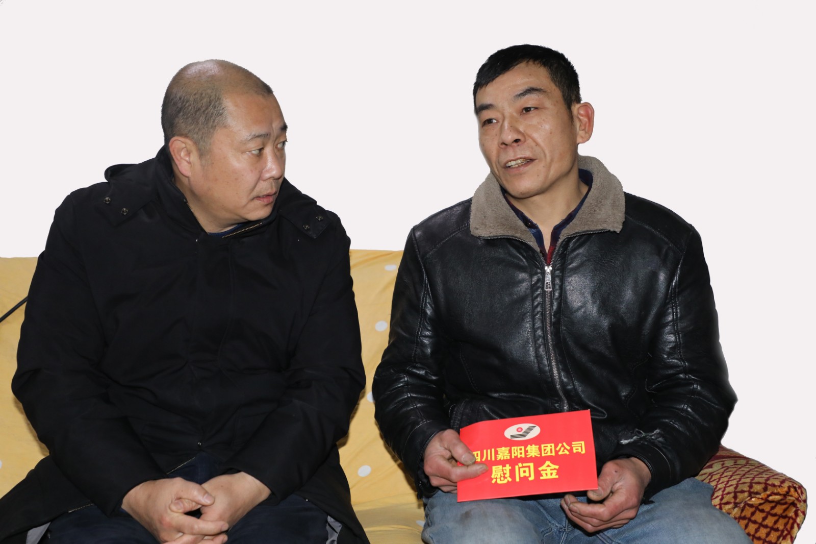 在石溪8号楼,党委副书记、总经理范勤英看望慰问嘉阳煤矿掘进工邓先平,邓先平因妻子和女儿都身患重疾,个人收入也不高,精神压力比较大,范勤英耐心倾听邓先平心声,给予他安慰和鼓励,希望他正确面对困难和压力,全家人要一起过一个平安祥和的春节。