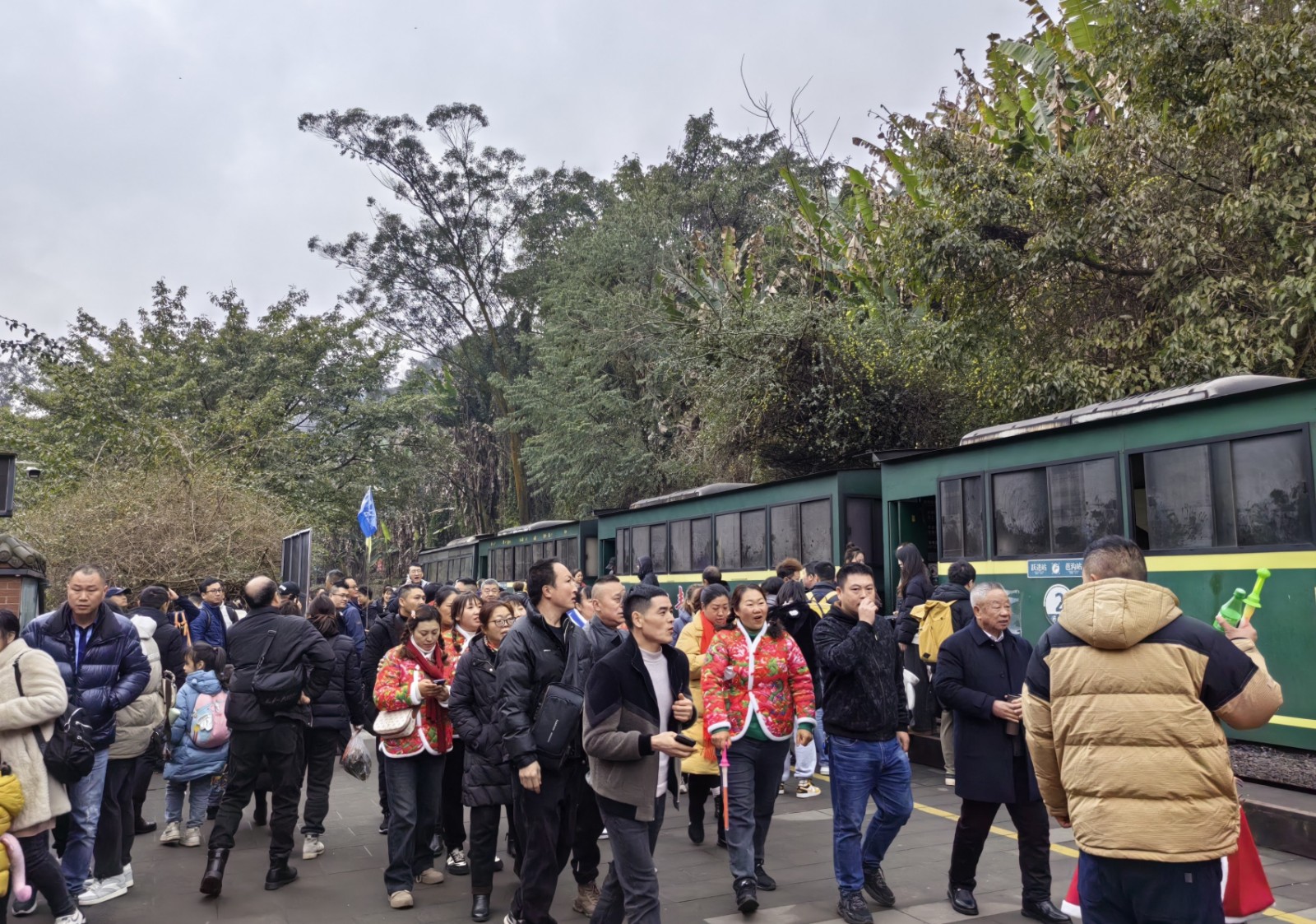 为应对激增的客流量,川投峨旅公司提前部署小火车运力,灵活增开观光专列班次,优化各站点及观光平台环境布置。同时,加强对火车车厢、观光矿井器械、景区内部交通车等设备设施维护检查,确保游客安全游览,安心体验。