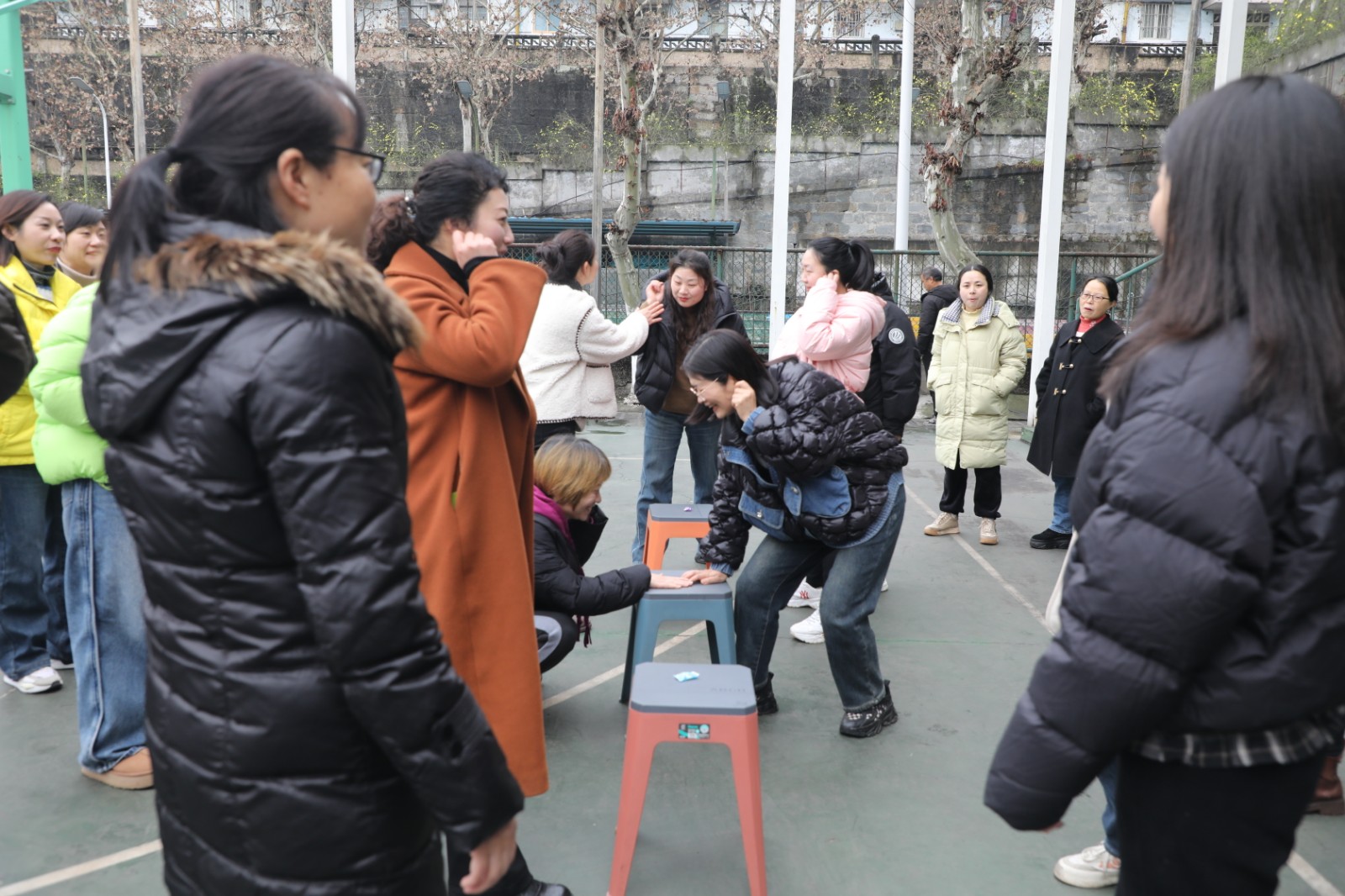 为增添活动趣味性,现场特别设置了“背对投球”团队赛。两人一组,一人手持接球筐,另一人背对向后投掷乒乓球,考验搭档间的信任与默契。比赛中,有人因配合失误闹出“乌龙”,也有人精准投球引发欢呼。最终,“最佳拍档”组合以43球全中的战绩夺冠。游戏既缓解了压力,也拉近了彼此距离。