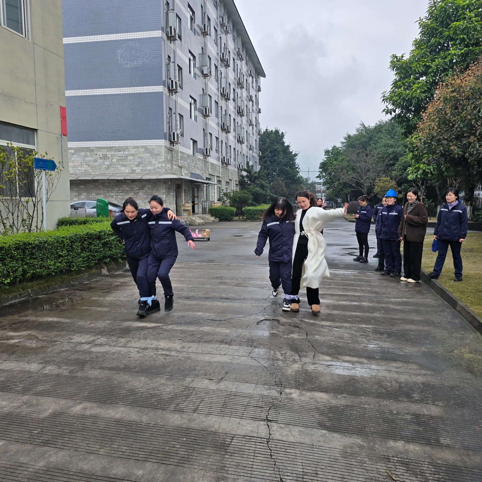 此次活动以 “两人三脚” 趣味比赛为主。每支参赛队伍由两名女职工组成,她们并排站立,将相邻的两条腿用绳子紧紧绑在一起。随着裁判清脆的哨声响起,各参赛队伍如离弦之箭向着终点奋力冲刺。有的队伍配合默契,步伐一致,一路领先;有的队伍遭遇绳子松开的状况,迅速在原地重新绑好,继续勇往直前。在紧张激烈的角逐中,各参赛队伍赛出了风格,赛出了水平。