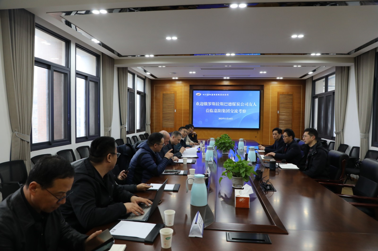 3月14日,俄罗斯拉斯巴德煤炭公司总机械师阿利莫夫.阿列克谢.尼古拉耶维奇,拉斯巴德奥锌煤矿副矿长古巴列夫.亚历山大.尤里耶维奇一行到嘉阳学习交流,了解嘉阳智能化综采自动开采工艺。嘉阳集团副总经理王维洪、生产技术部副主任工程师李有平、嘉阳煤矿副矿长刘永刚陪同。