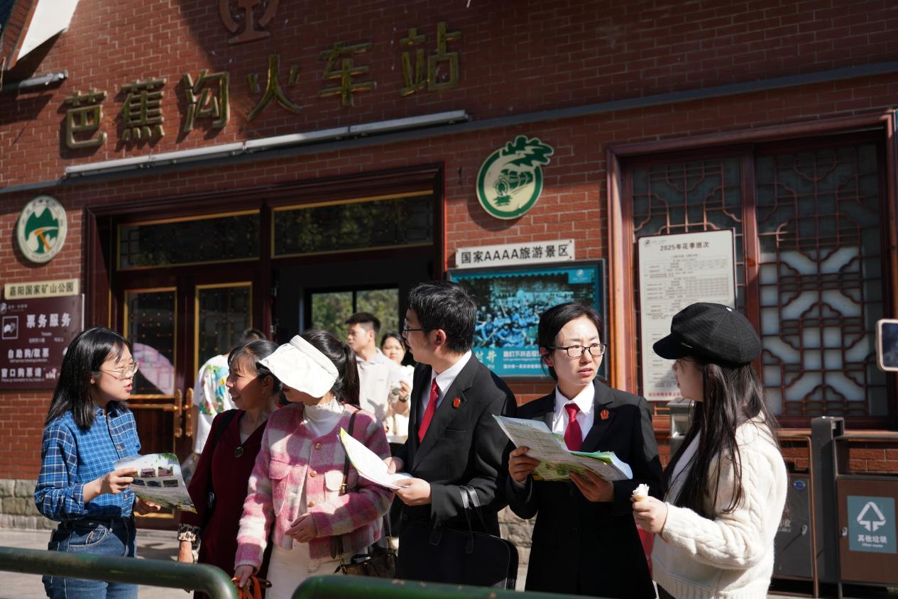 3月25日,嘉阳集团携手乐山市中院、犍为县法院及清溪、石溪法庭,开展“守护绿水青山·法治与文旅同行”普法宣传活动,通过“移动普法课堂”形式,向游客普及环境保护法律法规。