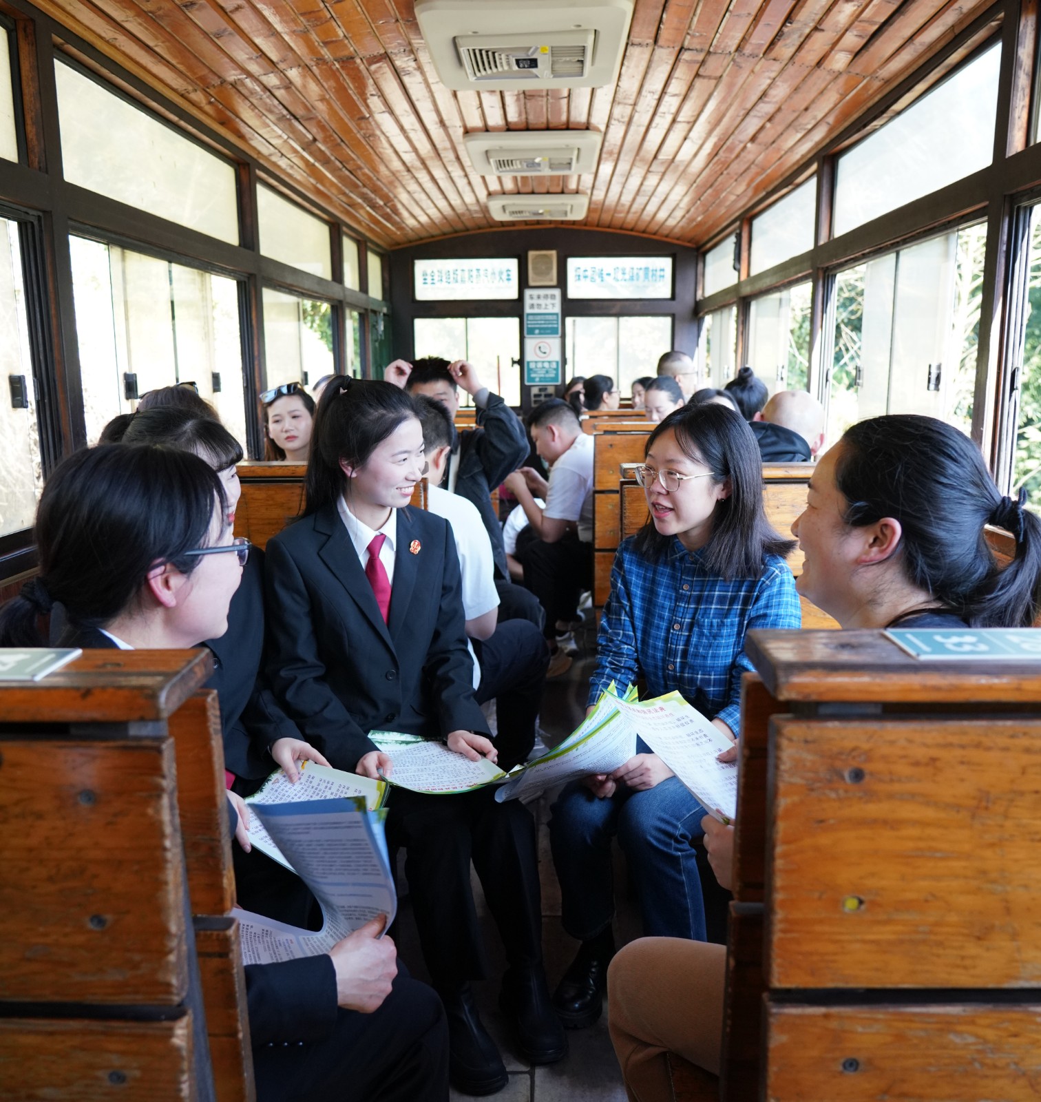 活动当天,法官们登上嘉阳小火车,将车厢变为“移动普法课堂”,结合《环境保护法》《民法典》中生态环境侵权责任条款,随着火车徐徐前进,向游客们讲解环境污染防治、生态破坏法律责任等法律知识,并发放图文并茂的普法宣传册。
