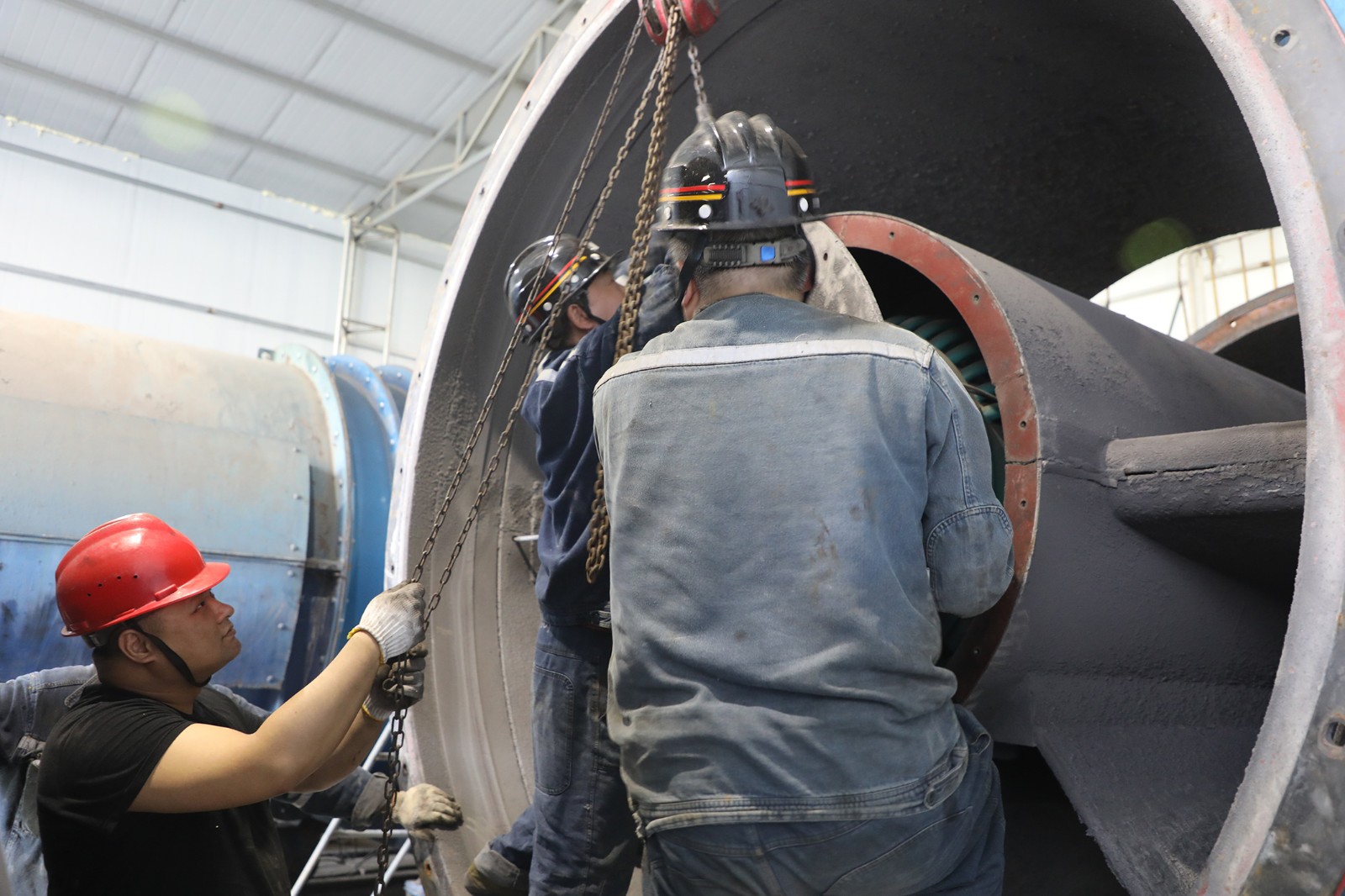 检修现场,电钳工严格依照安全措施和技术标准落实隐患整改要求,部件拆卸、起吊,轴承清洗、注油、装配,各道工序紧密配合、秩序井然。最终,新旧设备部件完美耦合,通电试车正常。