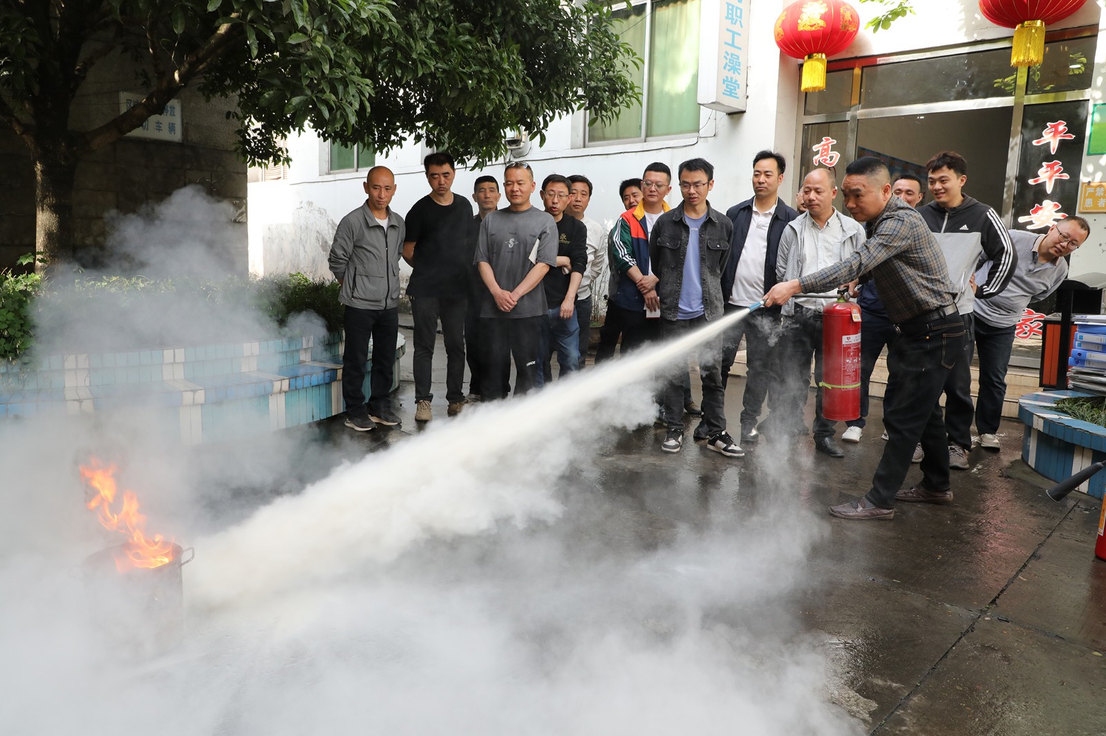实操演练将“人人有责”体现得淋漓尽致,培训人员介绍了冷却、隔离、窒息、化学抑制四种基本灭火方法,针对电器起火、燃气罐着火、油锅起火、家具着火等不同情况,重点讲解扑救方式和专业化操作。参训人员认真听取各类灭火器的特点、用途和正确操作讲解后,亲自上手尝试,做到了全员有效扑灭初起火灾。