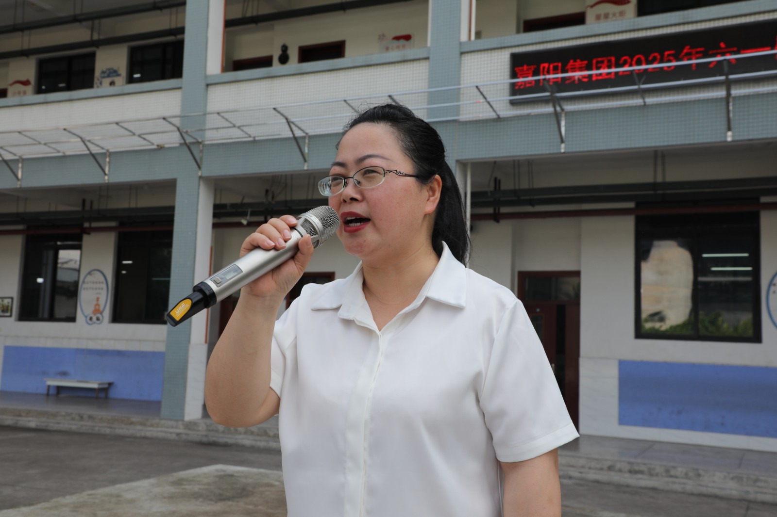 矿区一校校长周洪英代表全校师生对公司长期以来的关怀支持致以诚挚感谢。团委书记沈忱代表公司祝学生们节日快乐。寄语学生,希望大家树立远大理想,砥砺品格、勤奋学习,心怀阳光、勇敢追梦,把社会的关爱转化为前进的动力。
