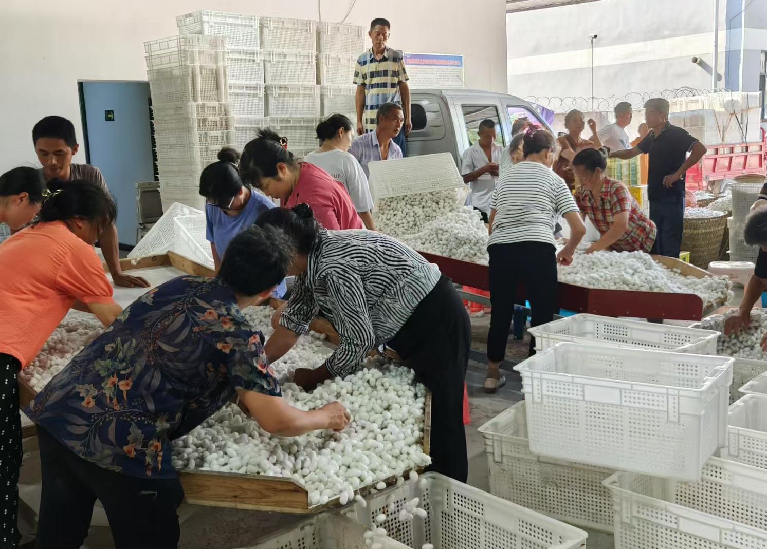 今年1至6月是关键的生产准备期和春蚕养殖期,大寅镇灯塔农村社区、高山村、石骡村等15个村(社区)积极投身养蚕产业,蚕桑养殖面积从2024年的2505亩扩展至2765亩,重点加强桑树修剪、清园施肥、追加施肥、人工防虫害、小蚕养殖、大蚕期温湿度管控等工作,全过程做到标准化、精细化管控,确保了总体工作质效。据统计,全镇上半年累计完成两季养蚕,共饲养小蚕208张,收获蚕茧9969公斤,实现销售收入54.2993万元、利润17.22万元,各项指标均接近2024年全年养殖水平。其中,净利润为去年全年的95.6%。此外,2023年先期发展起来的高山村、互通村、中梁村、灯塔农村社区今年全面达到了丰产,预计四个村今年平均年销量收入将超25万元。期间,嘉阳集团与大寅镇经营班子成员保持密切联系,并持续关注项目推进动态,对蚕桑养殖规模拓展、人员技术培训、产品销售方面提出合理建议意见。