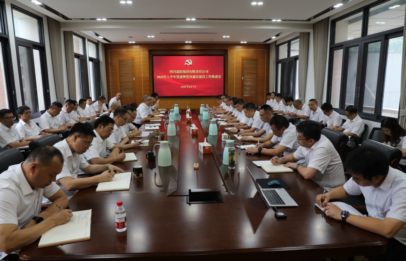 8月7日,集团公司召开2025年上半年党建暨党风廉洁建设工作推进会。党委副书记、工会主席谢建国主持会议,公司领导班子成员,专职纪检干部、各级党支部书记等参会。
