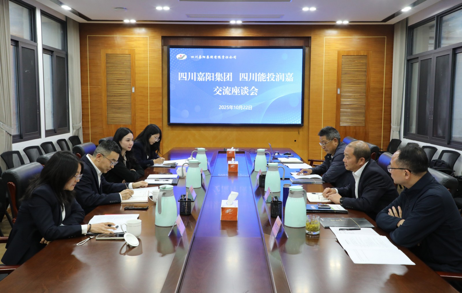 10月22日,四川能投润嘉置业公司党委书记、董事长董英伟率队到公司开展座谈交流,与公司党委书记、董事长范勤英等深入探讨,共谋发展新篇。