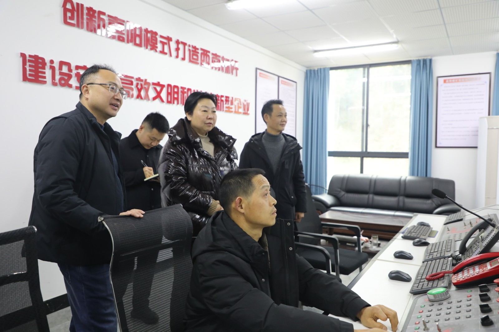 干文琼一行察看了嘉阳煤矿调度中心及远程采煤集控室,对企业推进“智改数转”、提升生产效率、保障作业安全、降低劳动强度的做法予以肯定。
