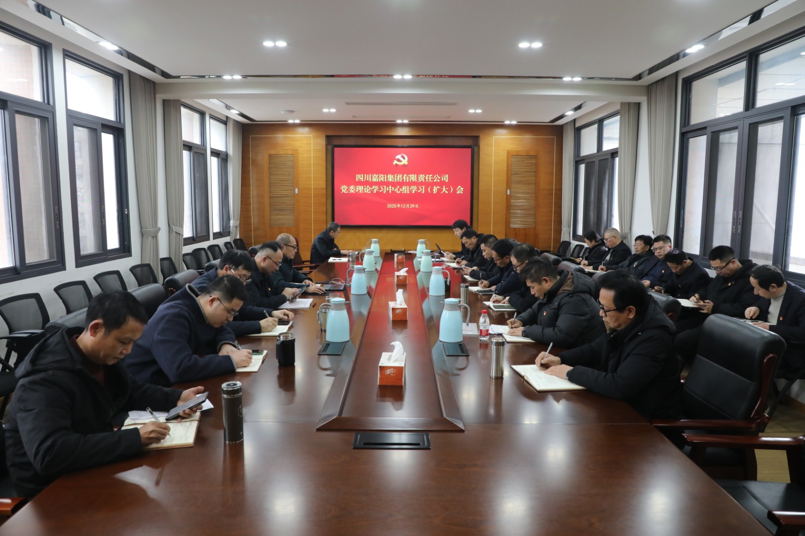 2025年12月29日,公司党委书记、董事长范勤英主持召开党委理论学习中心组学习扩大会,重点学习省委十二届八次全会公报,聚焦“深化改革提质促效”展开研讨,旨在提升党员干部对国企深化改革的认识,积极谋划和推动“十五五”规划,促进公司转型发展提质增效。