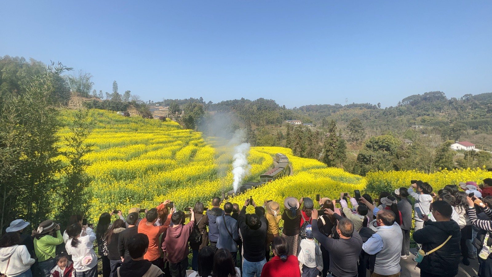 春节假期与油菜花期重叠,新产品引爆市场。段家湾“蓉早油七号”油菜花如期绽放,游客可沉浸式体验蒸汽火车穿越油菜花海的经典画面,成为社交媒体传播热点,有力拉动游客量激增。