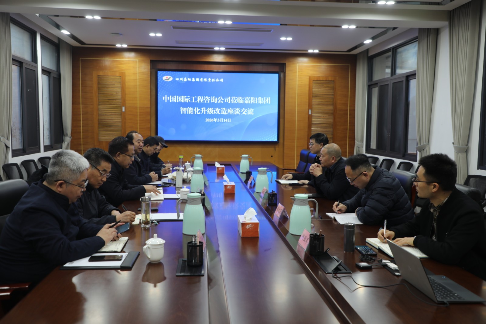 3月14日,中国国际工程咨询公司董事张宗玟一行来到嘉阳,就智能化升级改造、优质资源争取等事宜开展座谈交流,嘉阳集团党委书记、董事长范勤英,党委副书记、总经理谢建国,总工程师、副总经理袁成金陪同交流。