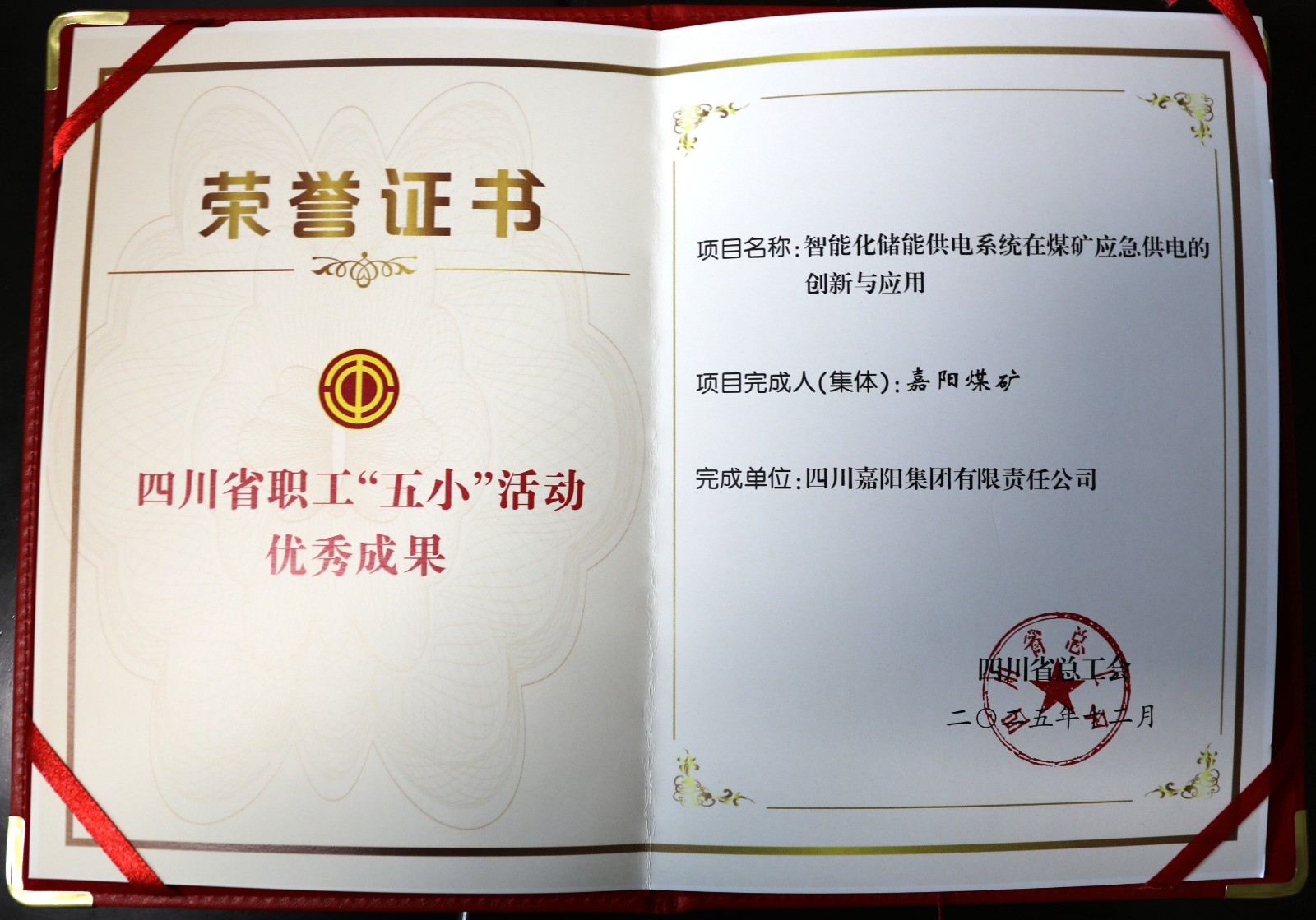 近日,四川省总工会通报2025年职工“五小”活动优秀成果,嘉阳集团“智能化储能供电系统在煤矿应急供电的创新与应用”榜上有名。