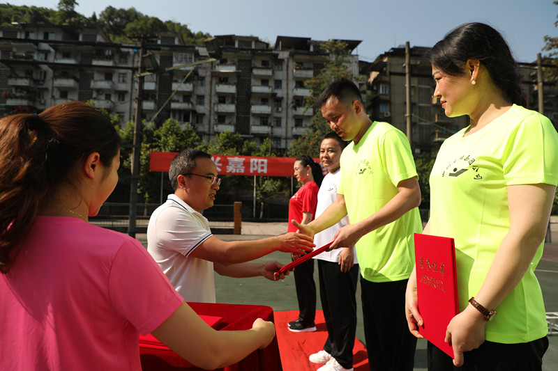 第九套广播体操由8节徒手体操组成,动作设计科学,坚持锻炼有利于心肺功能改善,做一遍只需4分钟,非常适合课间和工间身体锻炼。此次广播体操比赛由嘉阳集团机关和6个二级单位组队参赛,每两队为一组,分A、B区进行同场展示。正式比赛前7支队伍先进行了集体展示,200余人的方阵随着乐曲和节拍舒展着身体,刚劲与优美相济,整齐的动作、阳光般的笑容,充分展现了嘉阳人奋进的精神面貌。第一组比赛的两队为A区机关代表队和B区嘉阳煤矿代表队,两队均着荧光绿的上衣,领操员喊着口号率领全队入场,比赛在入场的那一刻就正式开始,嘉阳煤矿队在入场的气势上就压倒了机关队,做操的全过程更是队形整齐、姿势标准,展现出了煤矿工人特别能战斗的精气神,最终也得到了全场最高分。保卫部队从入场、做操、退场均充分展现了军人的气质,一丝不苟的动作、昂扬的斗志,展示出了纪律部队的风采。经过四轮展示,嘉阳煤矿以全场最高分9.70分毫无争议地获得第一名,保卫部紧随其后,荣获第二名,福溪粉煤灰公司夺得第三名。嘉阳集团党委书记、董事长杜勤为获奖队伍颁奖,比赛圆满落幕。