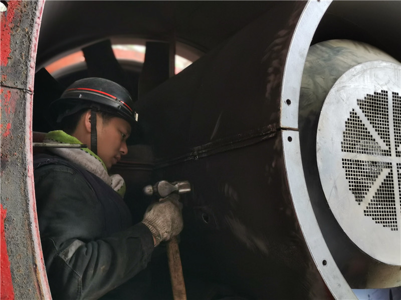 按照安全生产标准化管理体系要求,煤矿进一步规范矿井主要设施设备检修周期与方式,由机电系统维护主力军机电队结合矿井生产实际和主要通风机切换周期负责对观音溪风井和杨店子两总回风斜井的4台主要通风机进行全面检修,分别对备用通风机的风机集流器、一二级主机风叶和轴承、扩散器、消音器、扩散塔、风机底座进行全面检查、卫生清理和轴承清洗及轴承油更换,通过系列操作,能够促进通风机更好地发挥高效、节能、低噪、大风量等优点。