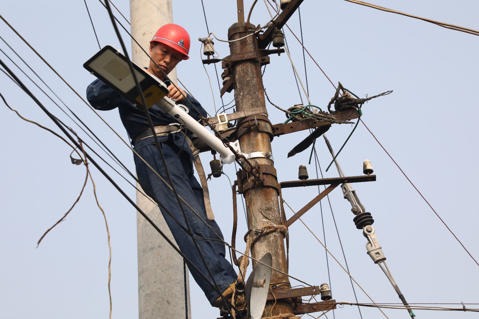 据石溪7号房居民反映,因去年电力线路改造后,机电分公司后门到石溪小火车车站铁路沿线的路灯已不能使用,给周边居民夜间出行造成了很大的困扰。机电分公司党支部在集团公司党委的部署下,立即行动起来,组织电工班骨干一起协商解决这一难题,考虑到电源及后期电费问题,安装太阳能路灯是首选方案。5月10日一大早,电工班张志刚师傅就爬上了电杆,头顶烈日开始安灯工作,汗水很快浸透了他的工作服,经过一天辛勤的工作,6盏太阳能路灯终于安装完毕。安灯工作受到沿线居民的高度关注,大家纷纷竖起大拇指点赞。