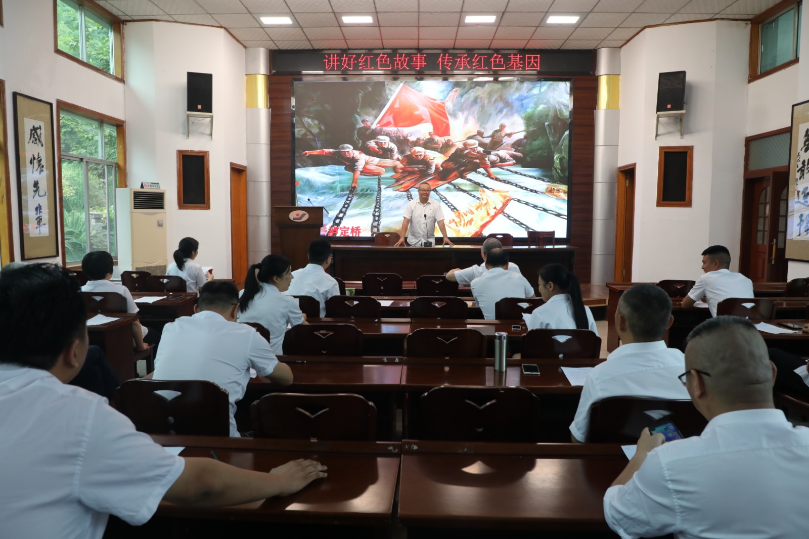“少年英雄王二小、勇堵枪口的黄继光、威武不屈的狼牙山五壮士……”6月16日,物供司党支部17名党员通过生动形象的讲述把一个个可歌可泣的英雄人物,一个个感人肺腑的红色故事分享出来,让广大党员重温红色经典,铭记光辉历史,缅怀先烈功绩,接受革命英雄主义和爱国主义精神洗礼,激发起强烈的爱国爱党情怀,进一步增强光荣感和使命感。党支部书记兰超号召全体党员:“没有先辈们的舍生忘死,就没有我们今天的幸福生活。我们要继承先辈遗志,传承红色基因,凝聚奋进动力,爱岗敬业,勤勉工作,为企业发展贡献自己应有的力量。”