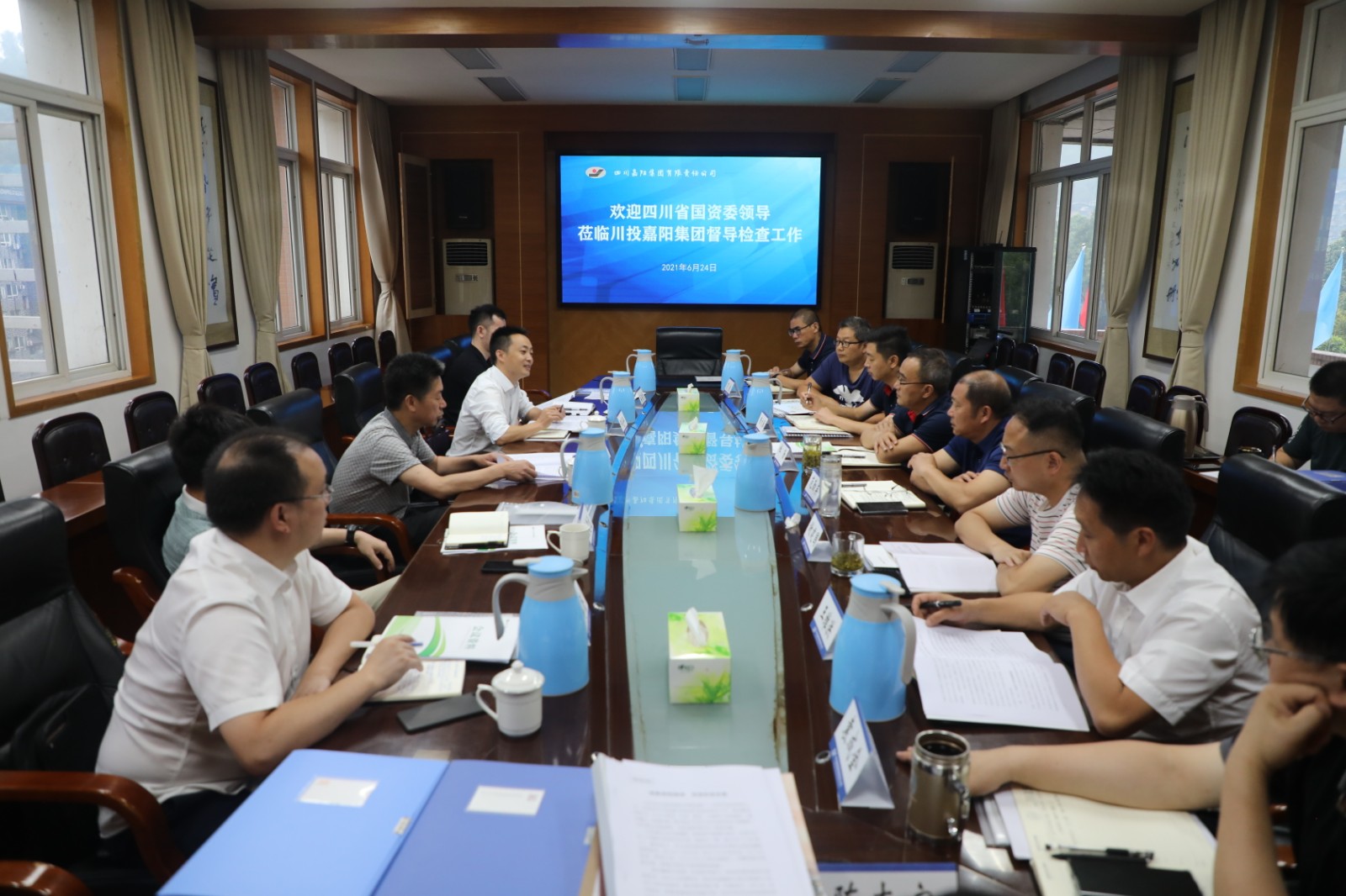 6月23日-24日,省国资委二级巡视员杨明率督导组到嘉阳开展综合督导检查。督促企业以最高标准、最实举措、最严要求抓好安保维稳各项工作,为庆祝建党100周年营造良好环境。