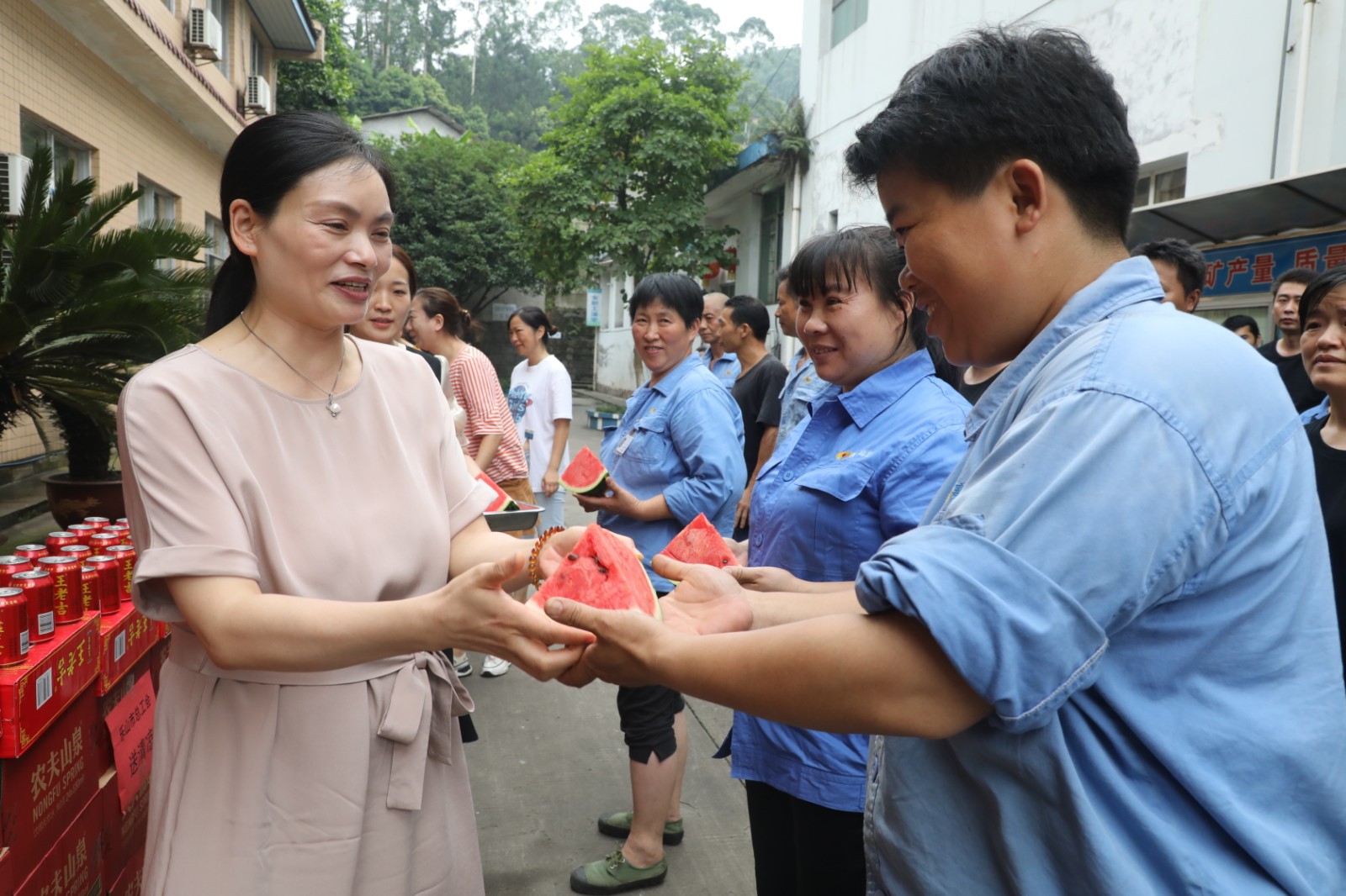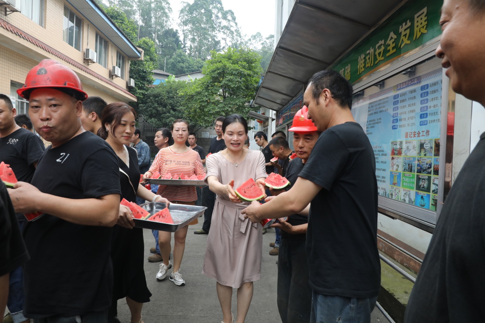 职工们满心欢喜地吃着清甜的西瓜,喝着甘凉的饮料,他们纷纷表示,将不辜负上级工会组织和领导对矿山职工的关心和厚爱,勤奋工作,以实际行动为企业发展作出贡献。