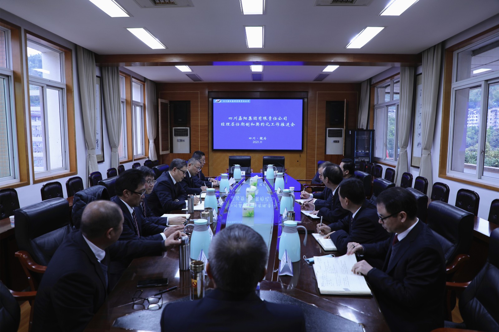 11月22日,嘉阳集团召开经理层任期制和契约化工作推进会,公司经理层干部和宜宾福溪粉煤灰公司经理层干部参加会议。