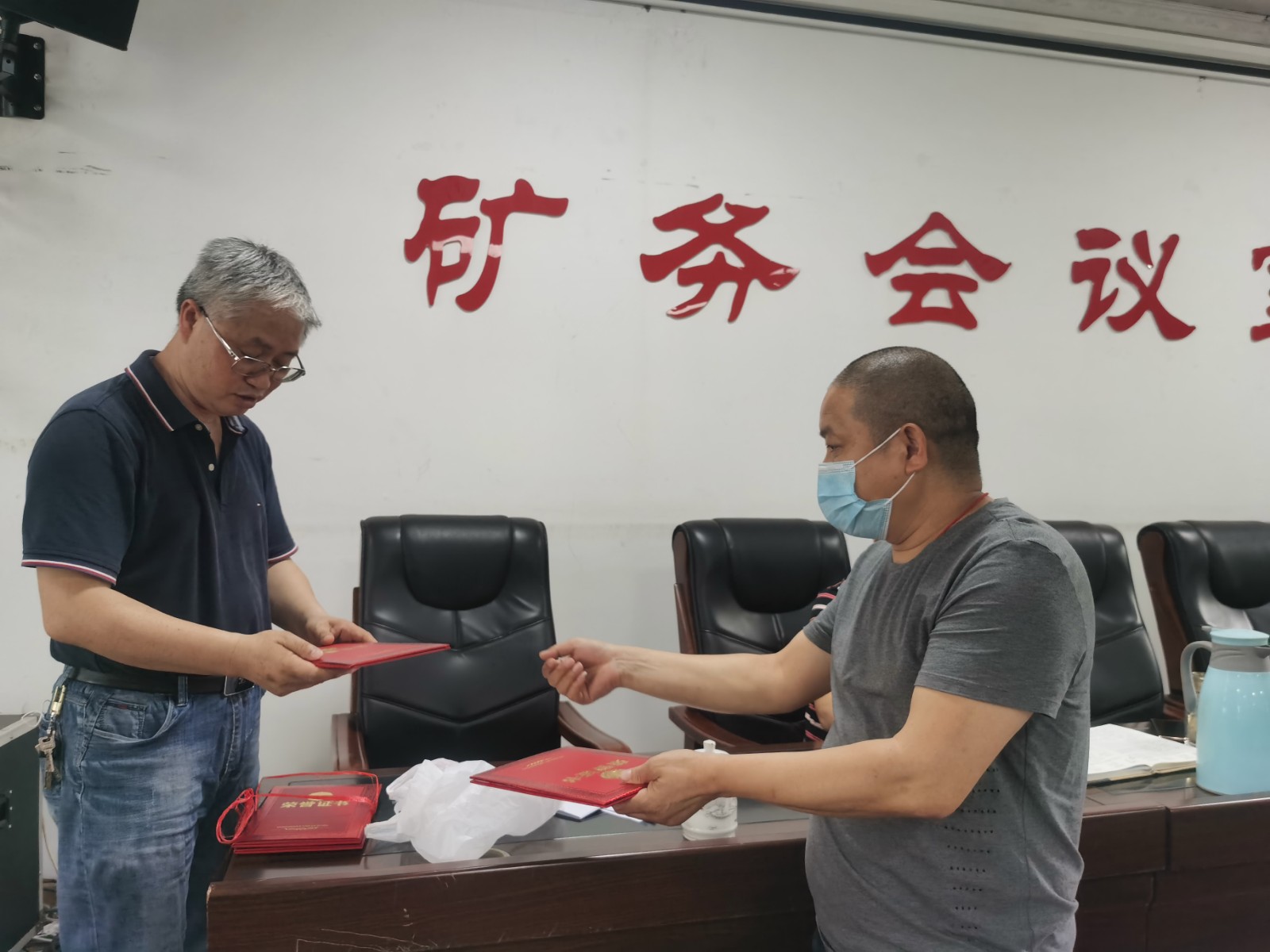 5月30日,公司副总经理、总工程师袁成金为嘉阳煤矿获得2020年和2021年西南五省(市区)煤炭学会学术年会优秀论文获奖者颁发证书。