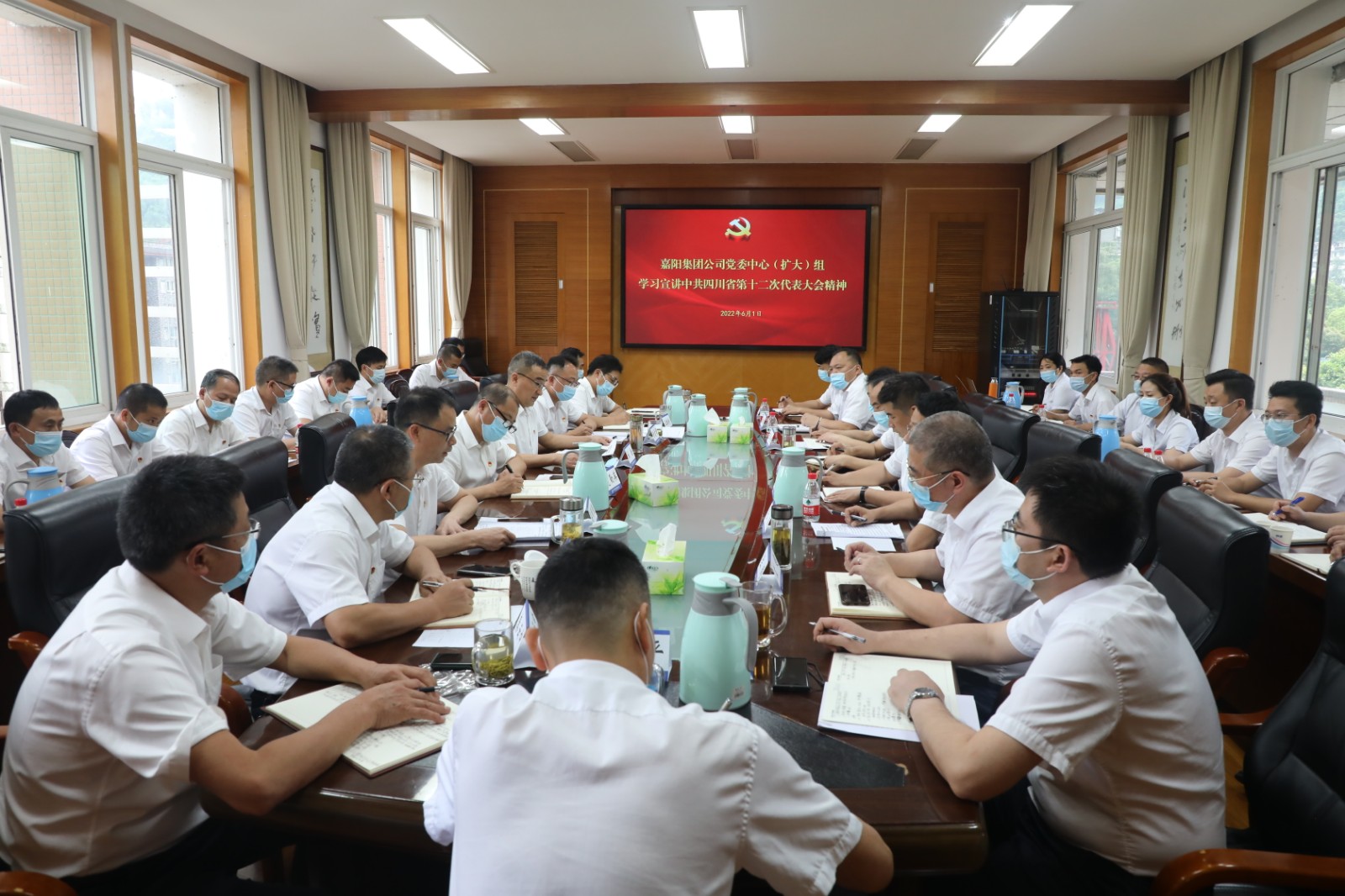 6月1日,嘉阳集团党委中心(扩大)组学习贯彻省第十二次党代会精神,党委书记、董事长杜勤同志作主题宣讲,领导班子成员、各部门负责人、全体党支部书记参加会议。