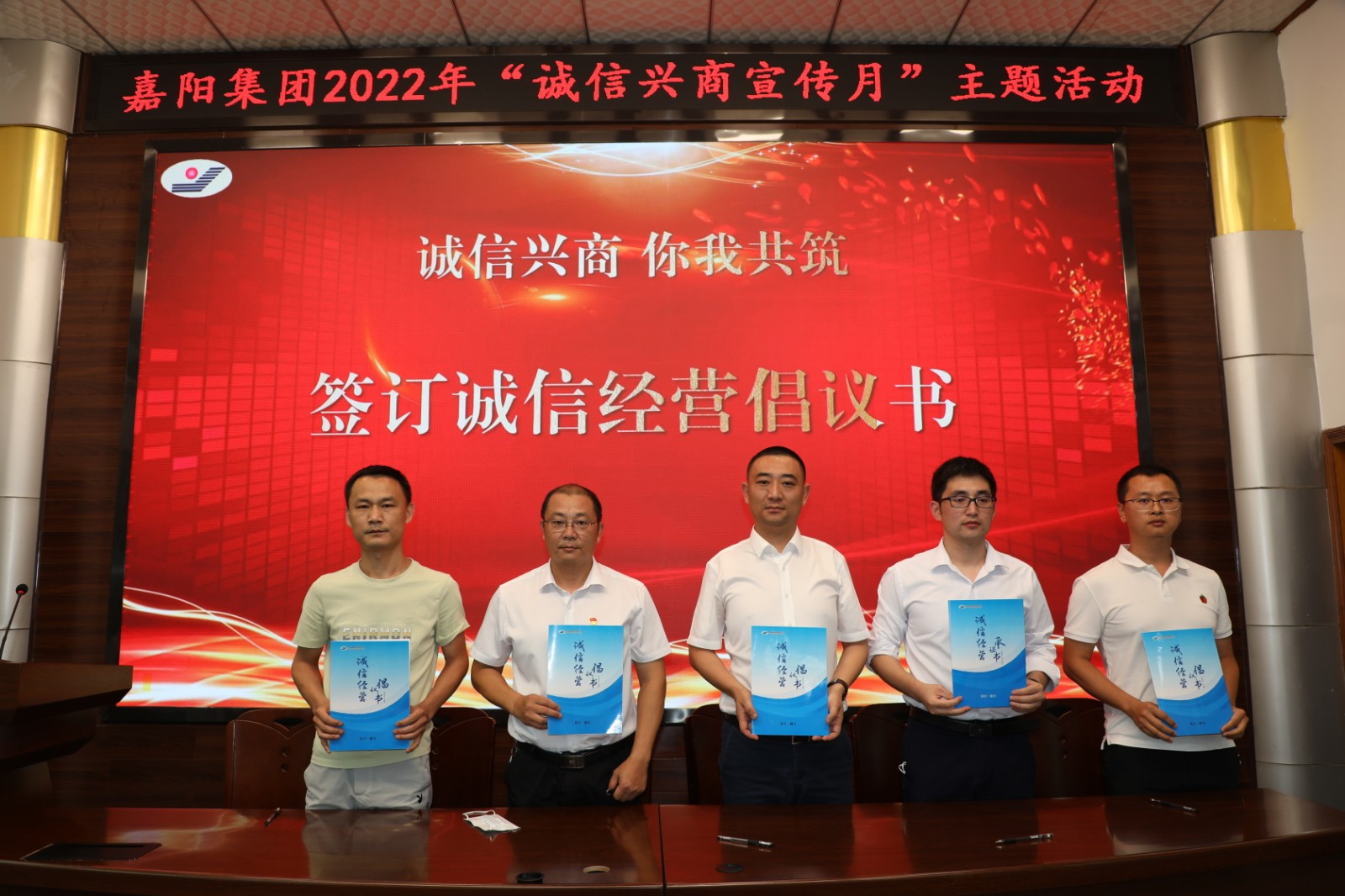 嘉阳集团公开承诺:遵规守法,合规经营;增强诚信意识,构建诚信文化;强化诚信责任,恪守商业道德;坚持诚信经营,守合同重信用;保护知识产权,坚持自主创新;恪守诚信承诺……