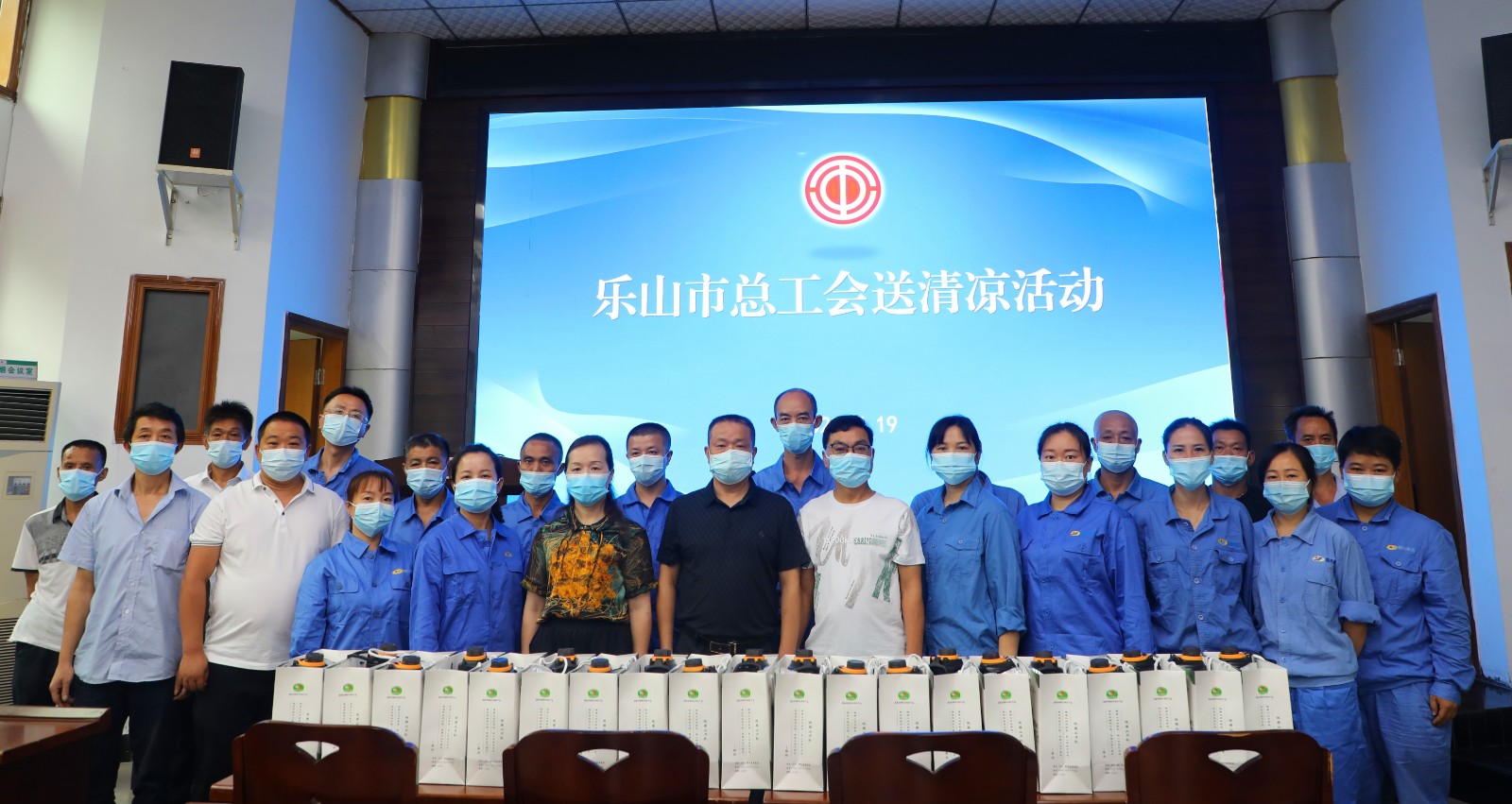 7月19日,乐山市总工会二级调研员邓安林一行到嘉阳集团开展送清凉慰问活动,为高温天气坚守在一线的职工代表们送去慰问品,将上级组织的关怀送到职工的心坎上。