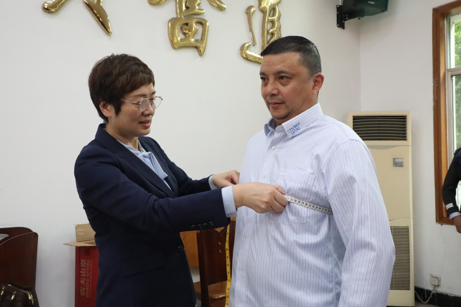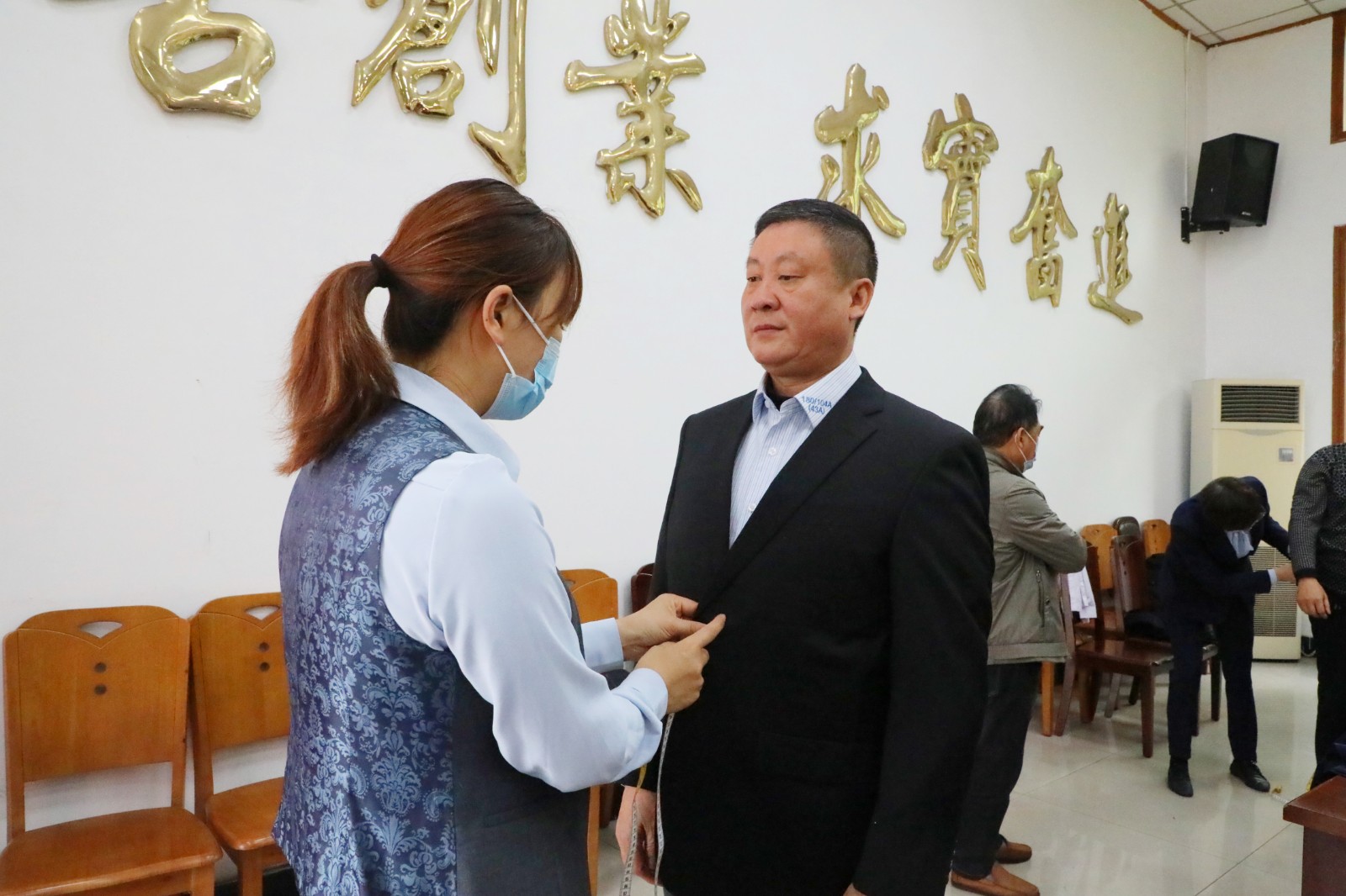 综合服务公司女职工宋燕笑着说道:“听说前期招标评比最终选定的这款,我平时喜欢穿运动休闲衣服的都好期待这款修身的形象礼服,而且工作人员量得太仔细了,感谢公司领导的精心安排!”