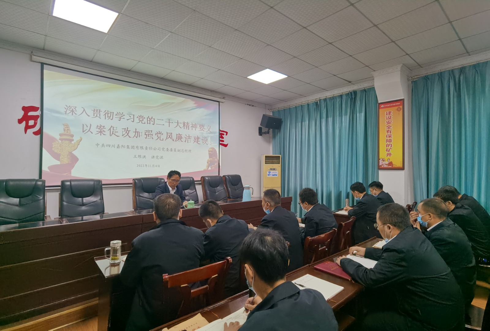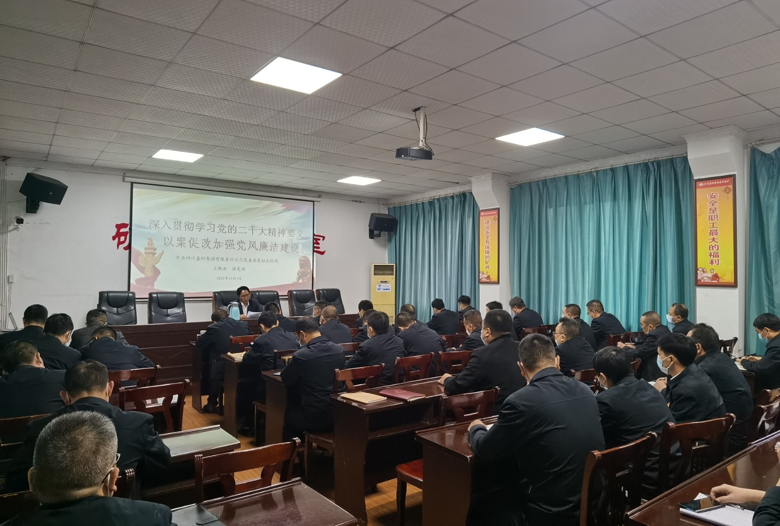 11月4日,按照嘉阳集团党委安排,党委委员、副总经理王维洪、金大钧分赴基层队站,为嘉阳煤矿、财务系统、营销公司党员、管理人员进行廉洁教育党课宣讲,党课内容翔实、发人深省。