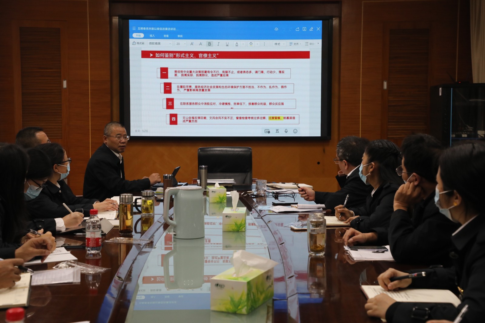 党委委员、副总经理金大钧从反对四风,严格遵守中央八项规定精神入手,结合二十大精神,诠释中央八项规定精神要义,举例说明清正廉洁的重要性,要求大家端正工作态度,着力解决问题,牢固树立服务意识;他强调财务人员更应该守住底线,时刻做到警钟长鸣、敢于担当,此次巡查整改发现的问题值得大家反思,以此为契机,要对自身工作进行全面检视,面对新征程新要求更要加强学习,在个人不断成长中做出新的成绩;他对公司合规风险管理库中与财务、营销人员紧密相关的合同管理、财务税收等重要风险点进行了提示,希望大家做到合规工作、合规管理,廉洁从业,避免风险;最后,他列举了公司近年来发生的经济案件,用身边案警示身边人,要求大家做到忠诚、干净、担当,德要配位、能要配位、廉要配位,才能想干事干成事不出事,做出成绩,形成经验。