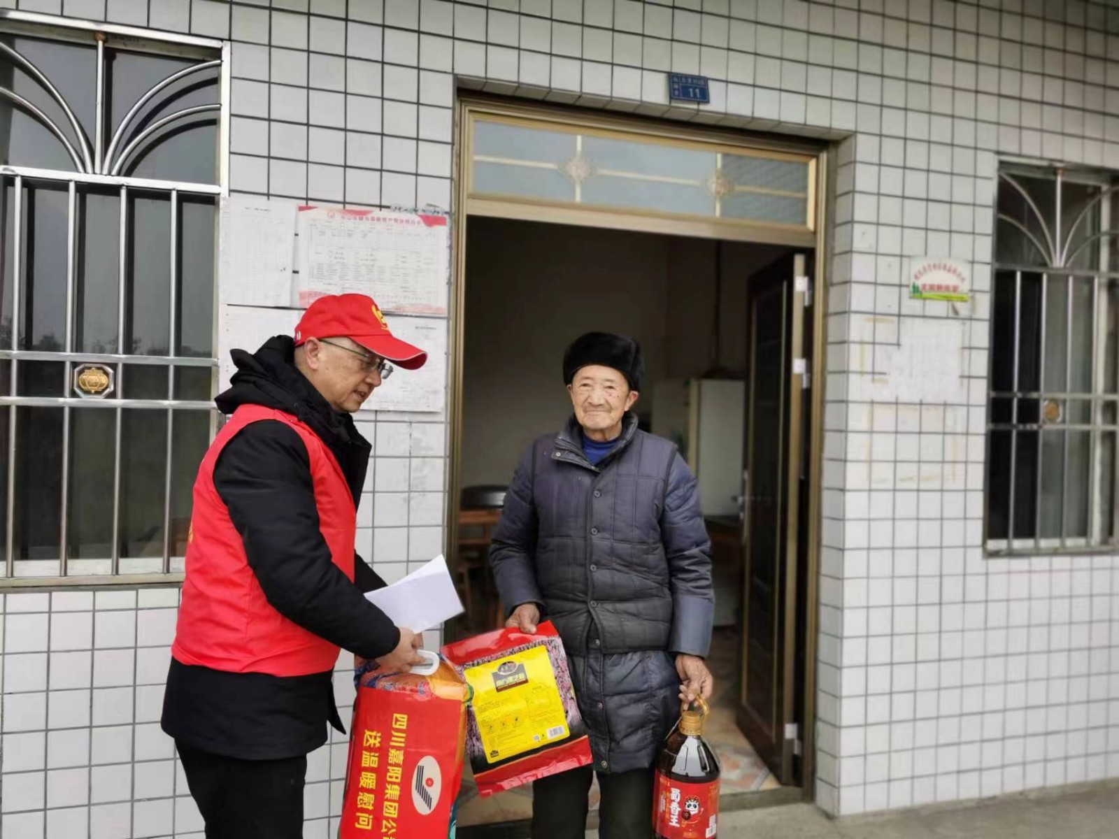 1月17日,嘉阳集团组织党员志愿者走访慰问光辉村、藕花村21户脱贫户,送去大米、菜油、牛奶等慰问品,为他们送上新春问候和美好祝福。