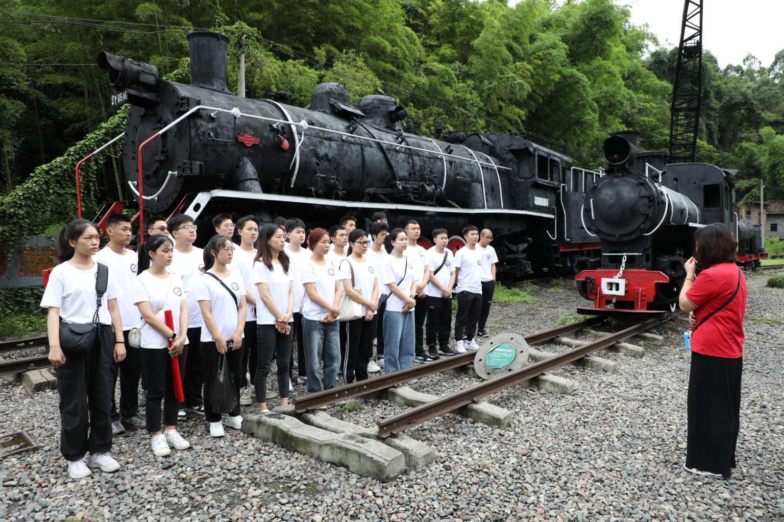 在袁成方老师和景区讲解员的陪同带领下,近30名新入职大学生在嘉阳创始人铜像前聆听了嘉阳发展历程和历史使命;在嘉阳小火车上,聆听微党课《火车跑得快,全靠车头带》;在嘉阳国家矿山公园博物馆,聆听微党课《星星之火可燎原,不忘初心为人民》;走进黄村井,聆听微党课《我为祖国献宝藏,燃烧精神永不灭》。